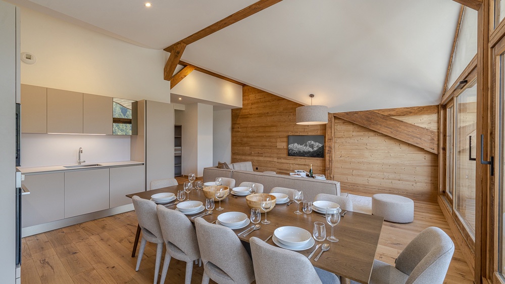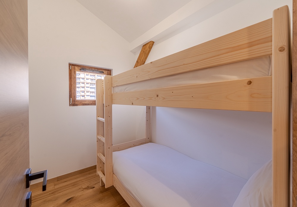 West facing five -room apartment of 100m² for 8 persons, on the 5th and last floor of the Ariondaz residence, in the "Fougères" building. This apartment is close to the slopes, 290 meters away (next to the gondolas) and you can return on skis. It has a very nice view on the mountain and the valley from the balcony, it is very comfortable and fully equipped. You will appreciate the height under ceiling.