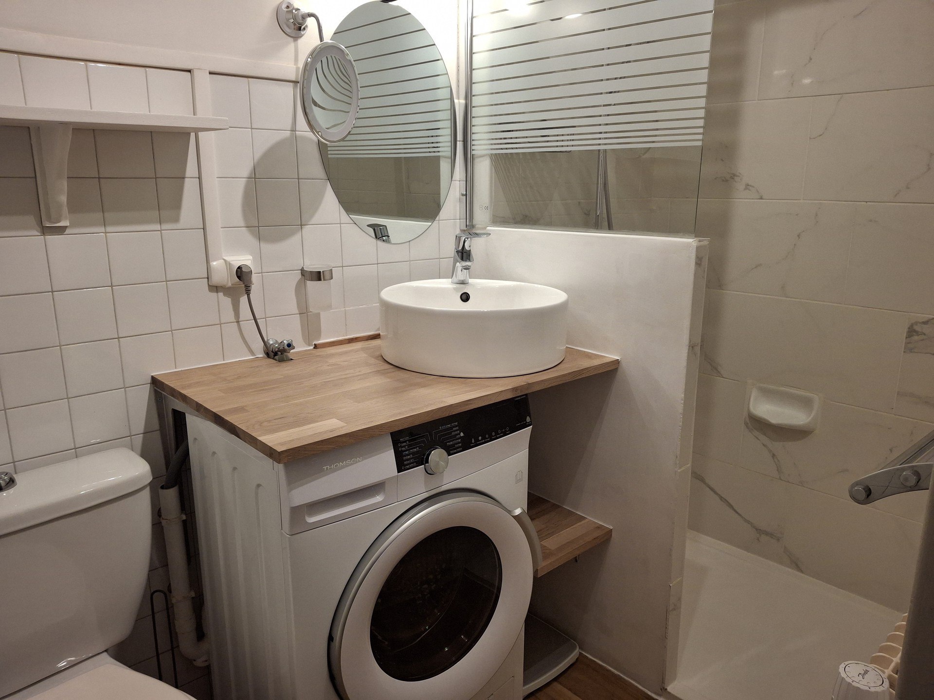 With bath, washing-machine and toilets.