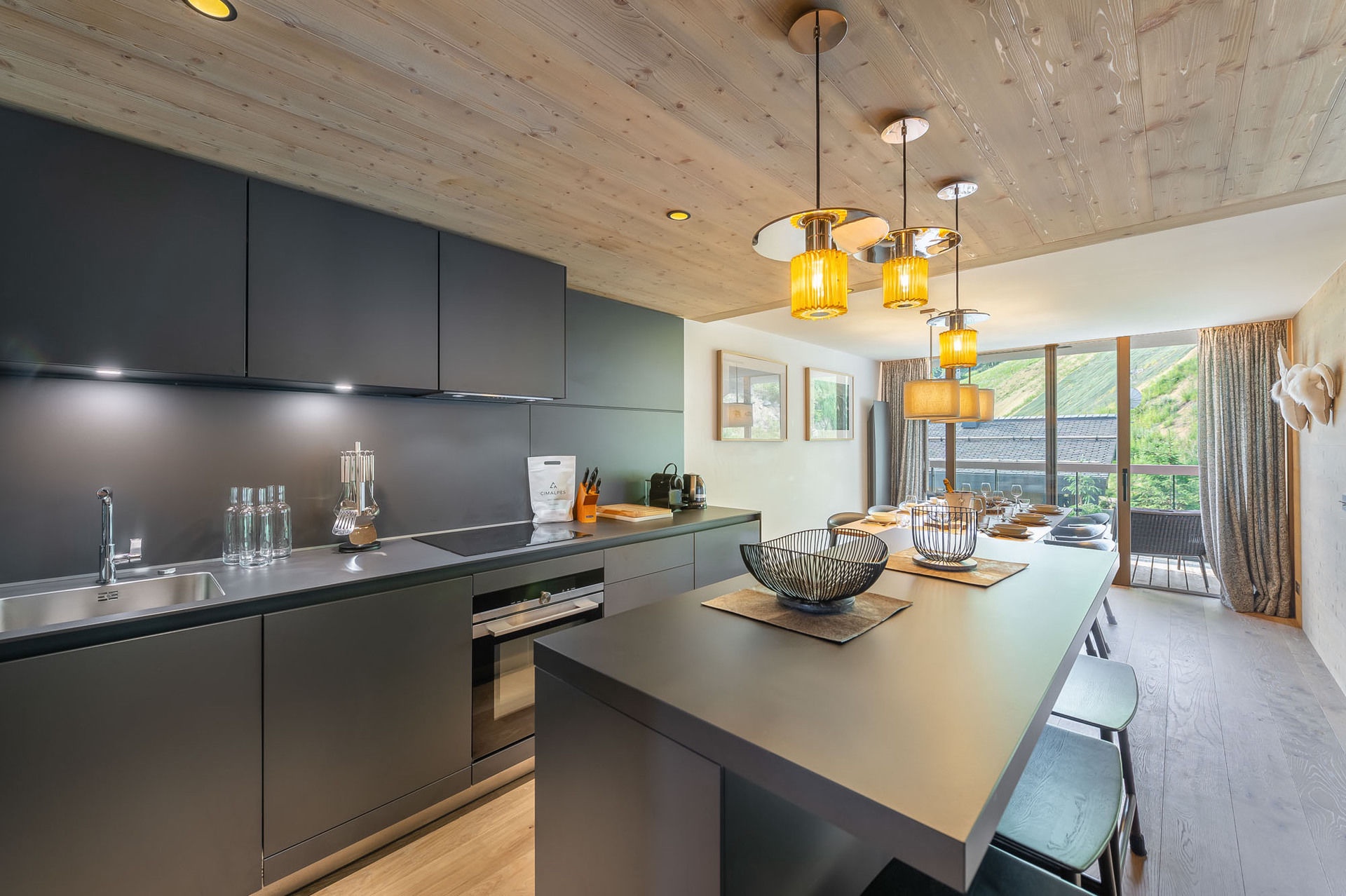 - Dining room and open kitchen