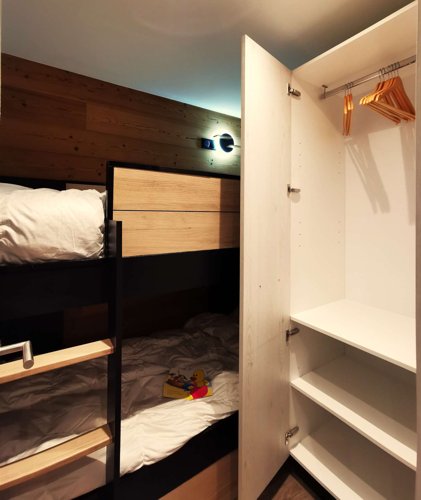 - Description: with bunk beds, reading lights with USB port and a large closet with wardrobe