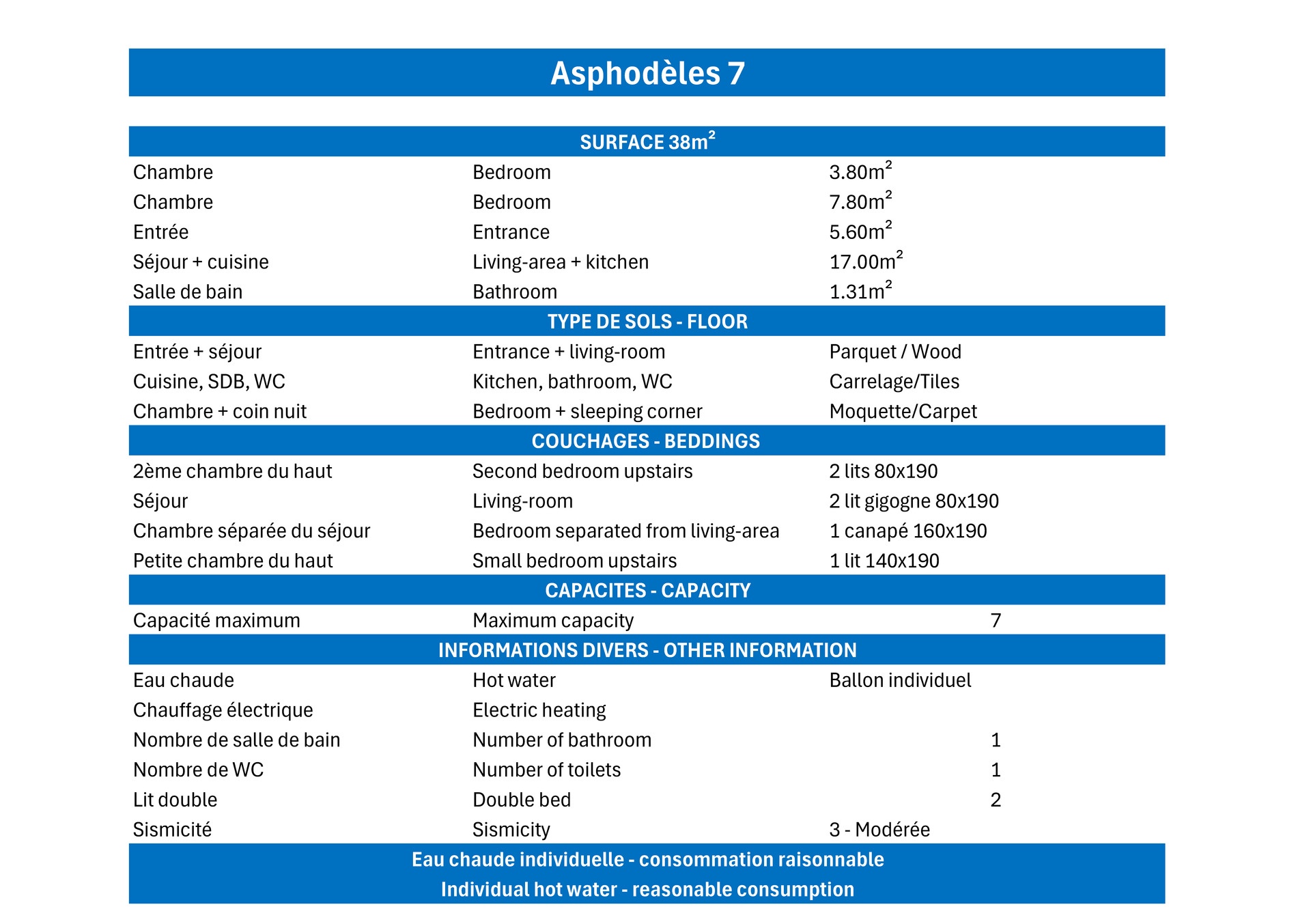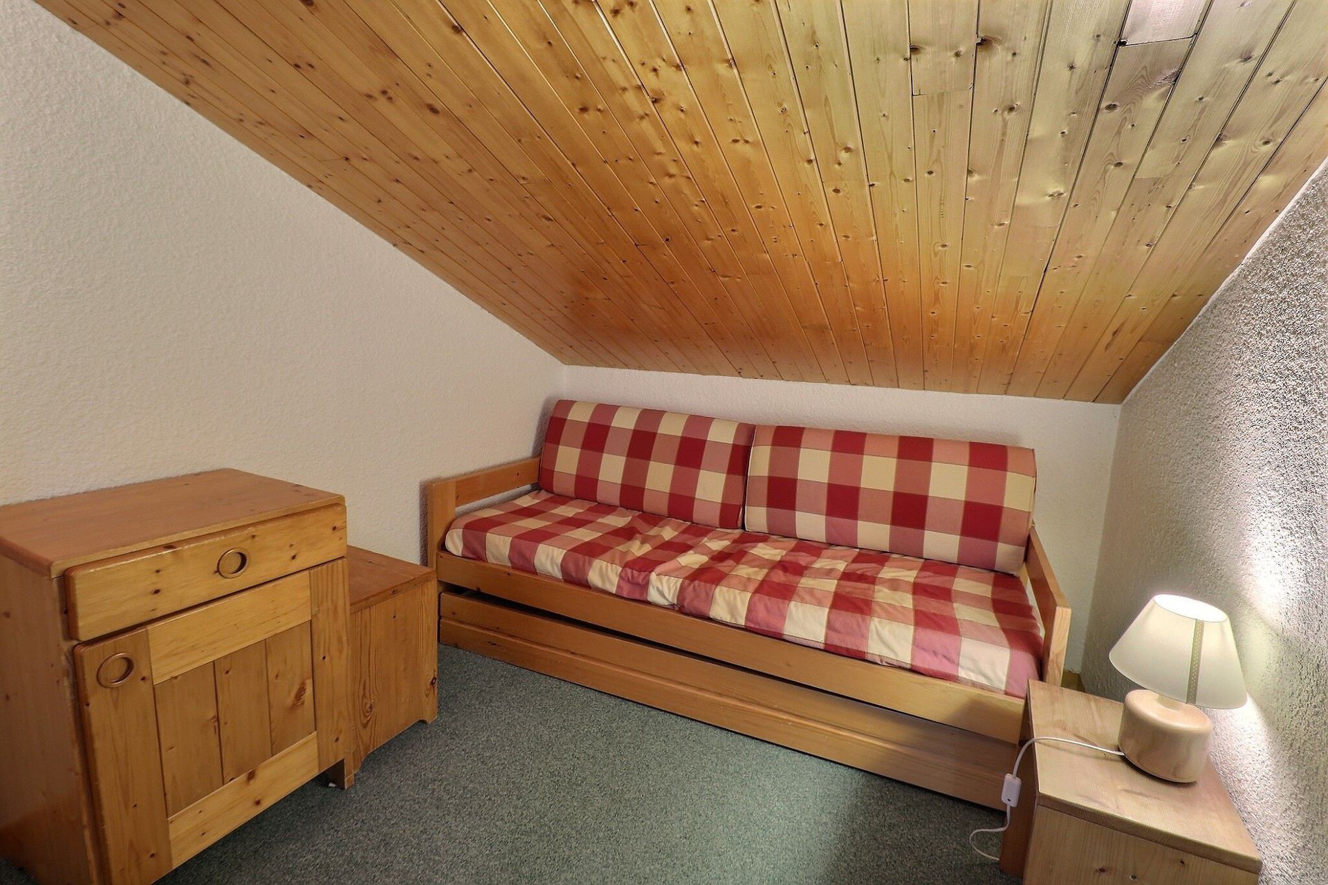 Bedroom : 1 single bed (80x190), 1 draw bed (80x190), 1 sink