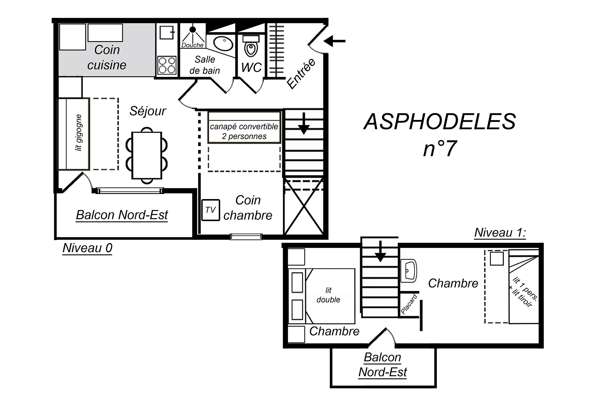 3 rooms Duplex with 2 sleeping area, 6/7 Persons, 38m², North/East Balcony,