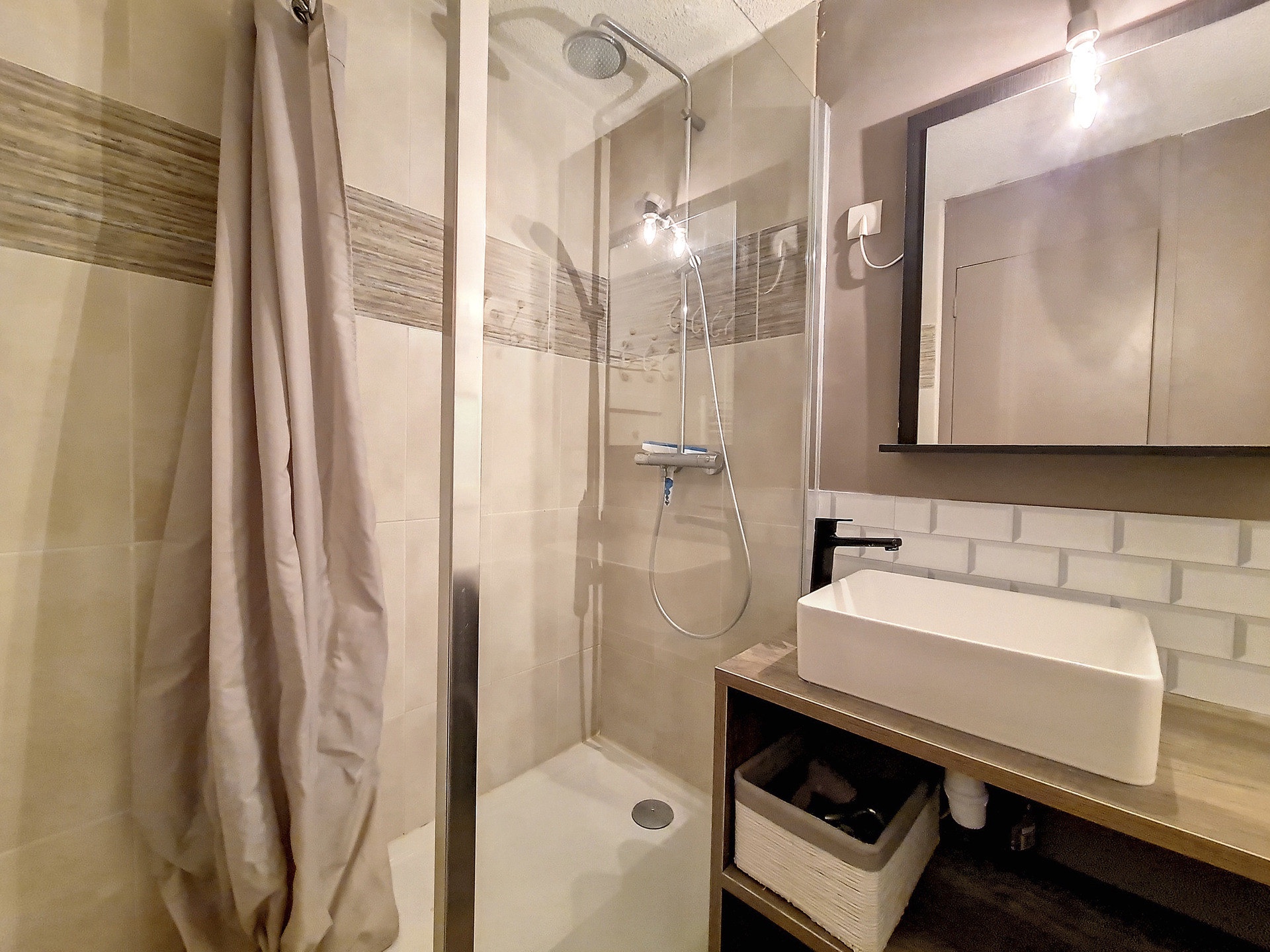Bathroom with shower.