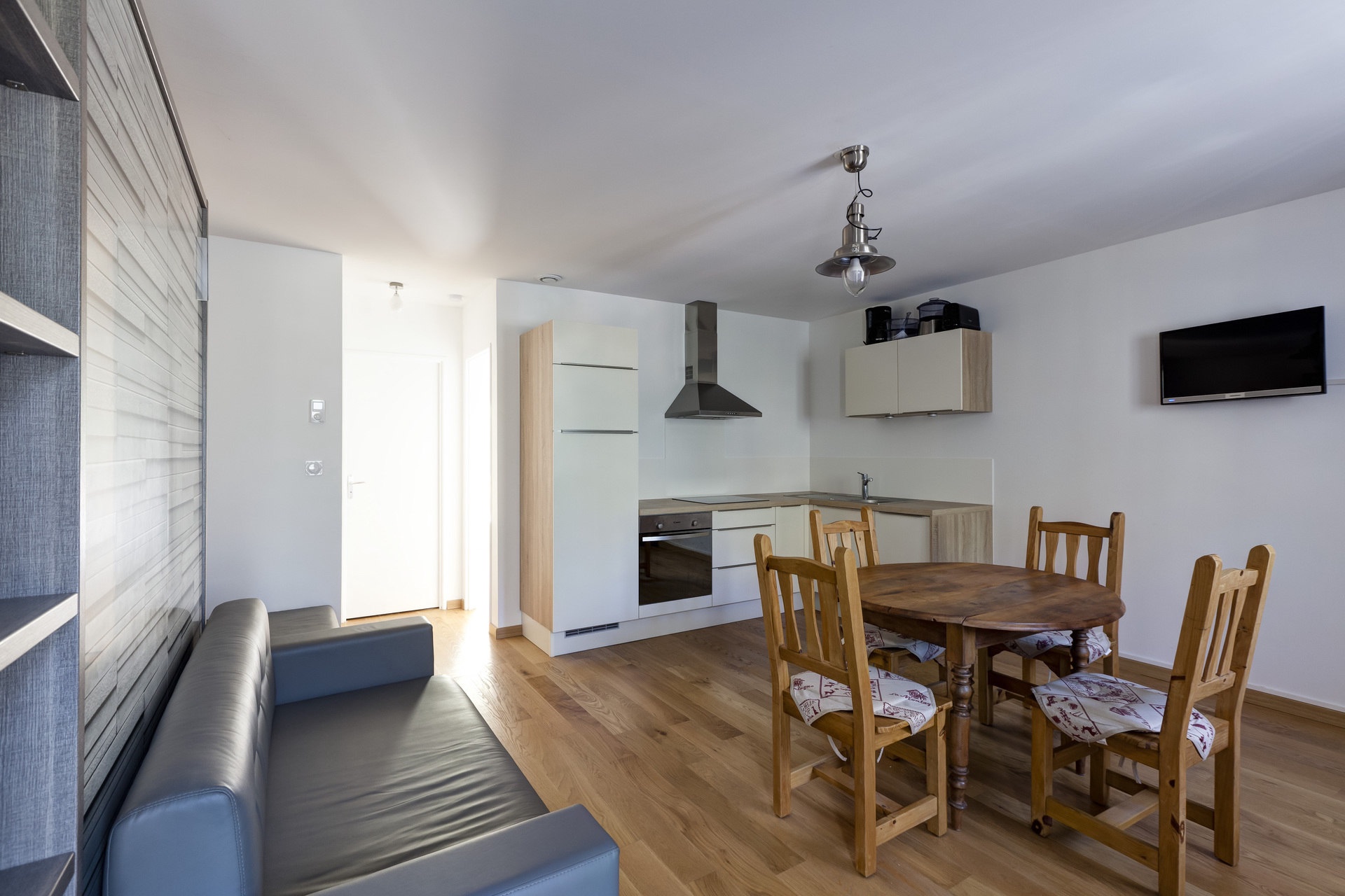 1 bedroom 40 sq-m apartment with sleeping area for 4 persons on the 1st floor of the residence with lift. Next to the Doron river, right in the centre of Brides-les-Bains and a few steps from the gondola leading to the 3 Valleys ski resort.