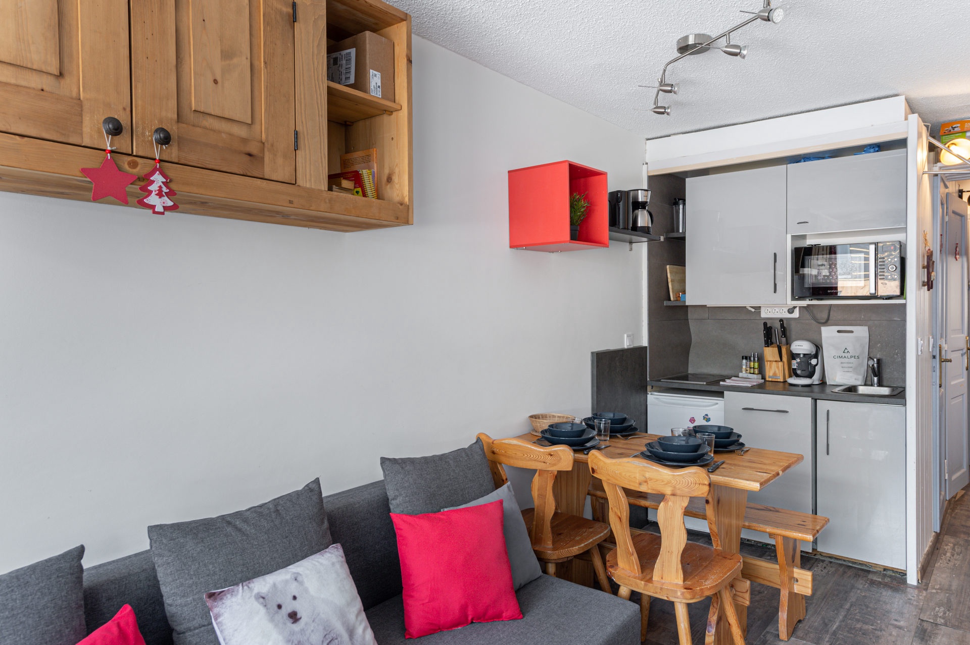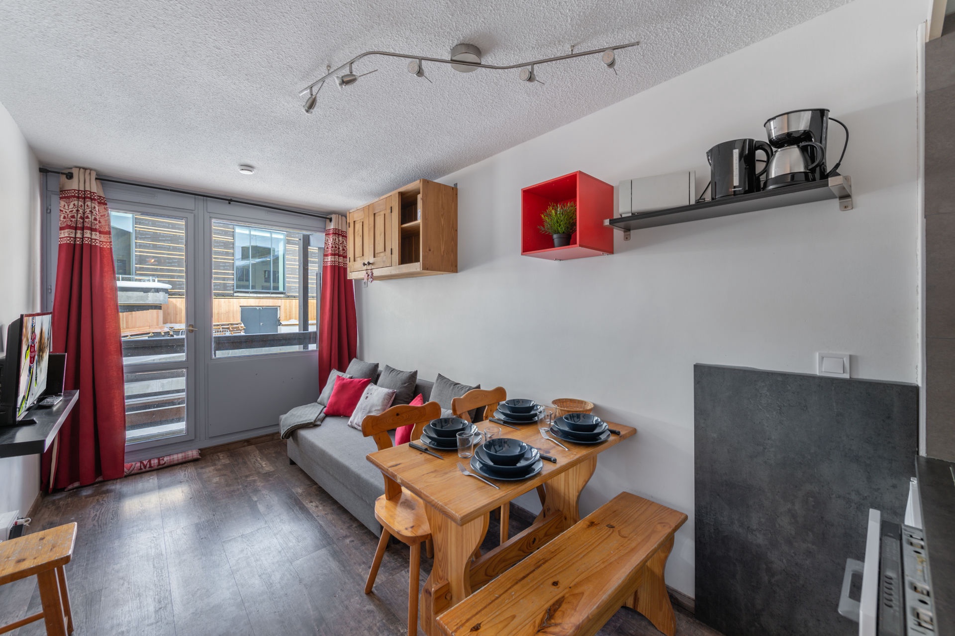 The apartment LAUZIERES 615 is situated in the 6th floor of the residence LES LAUZIERES in Val Thorens, close to the slopes. It's equipped for 4 persons and arranged as follows: