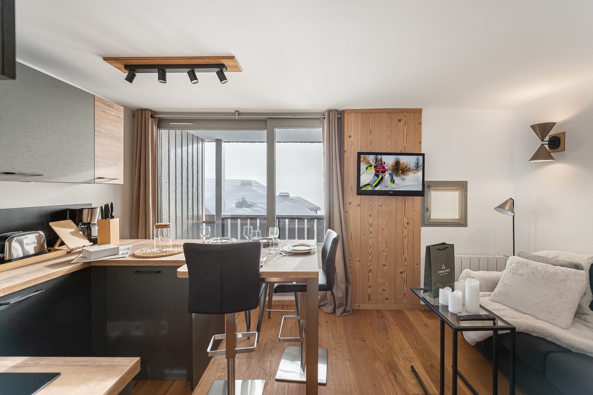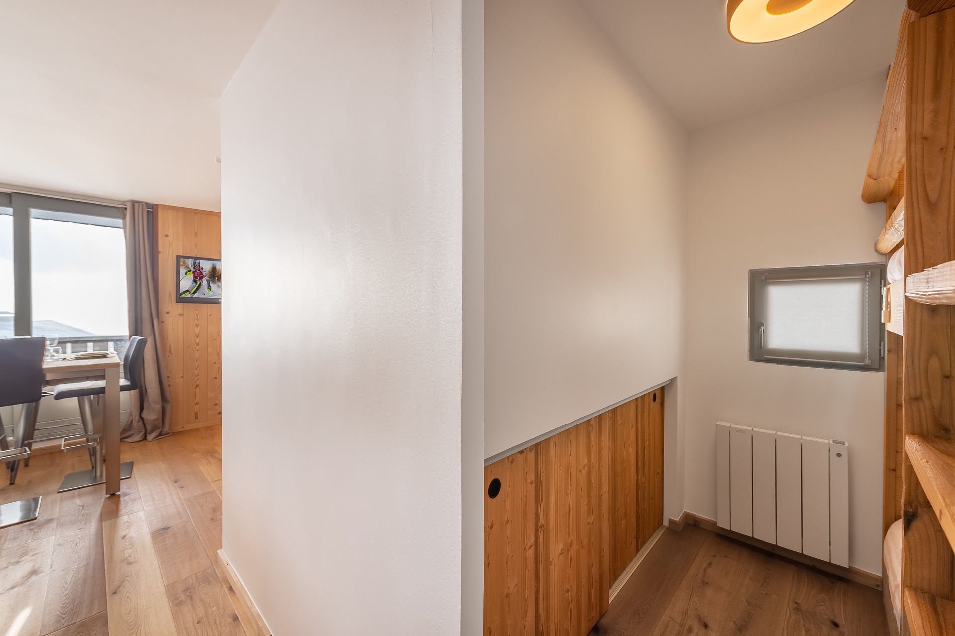 This apartment is located in the Résidence Orsière. Its major advantage is its location: it's right on the slopes, so you can really ski in, and right on the Place Caron, the heart of the resort's lively entertainment. All you have to do is open the ski room door to put on your skis on the snow front.