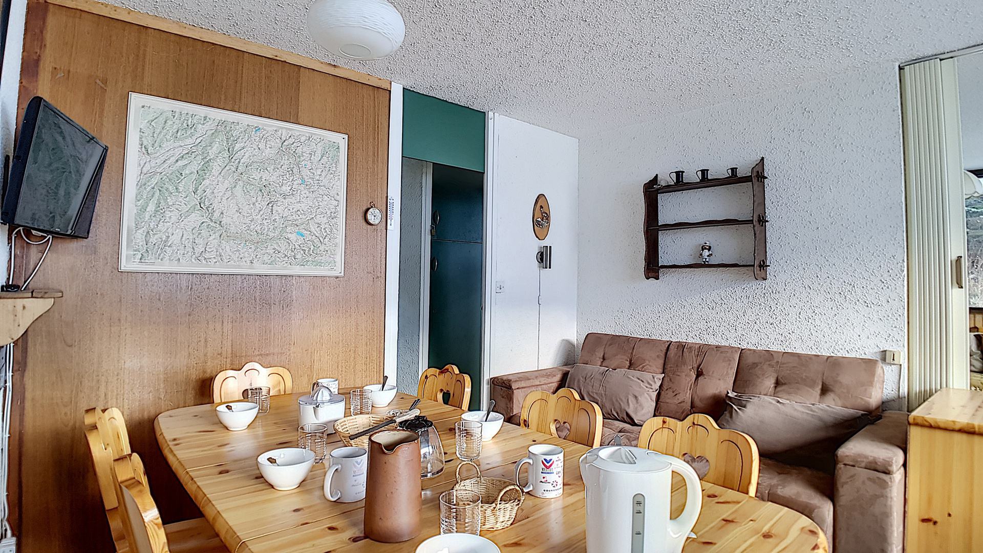 It is situated on the 2nd floor of a ski in ski out residence, it has a large South-facing balcony.