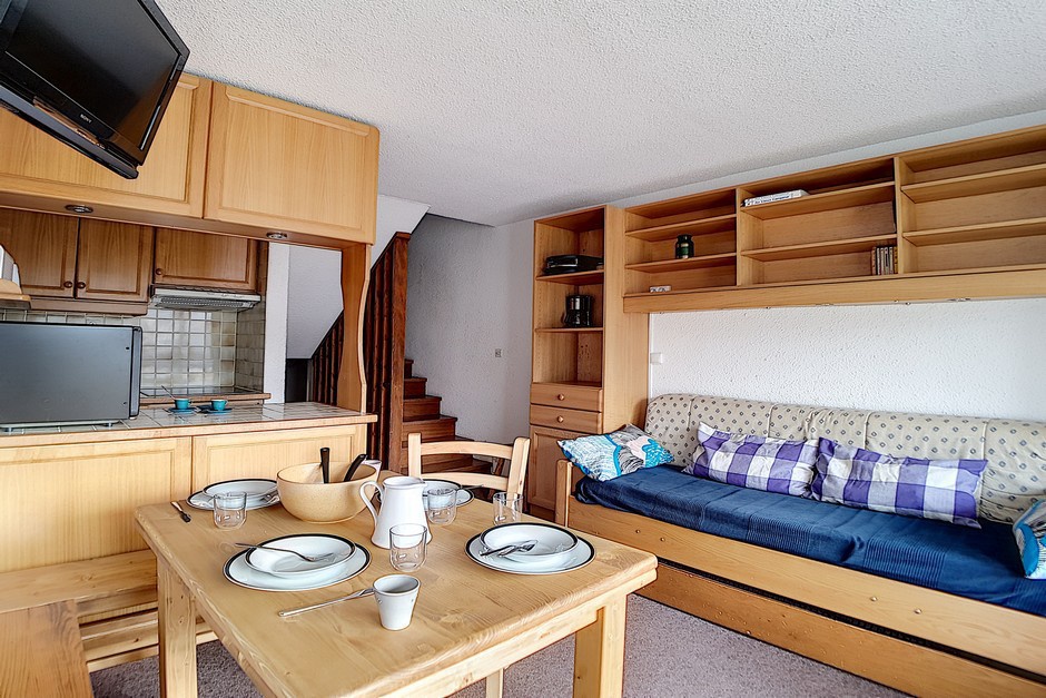 Apartment in duplex for 5 persons of 37m², situated on the 5th floor with lift and has a South/West-facing balcony.