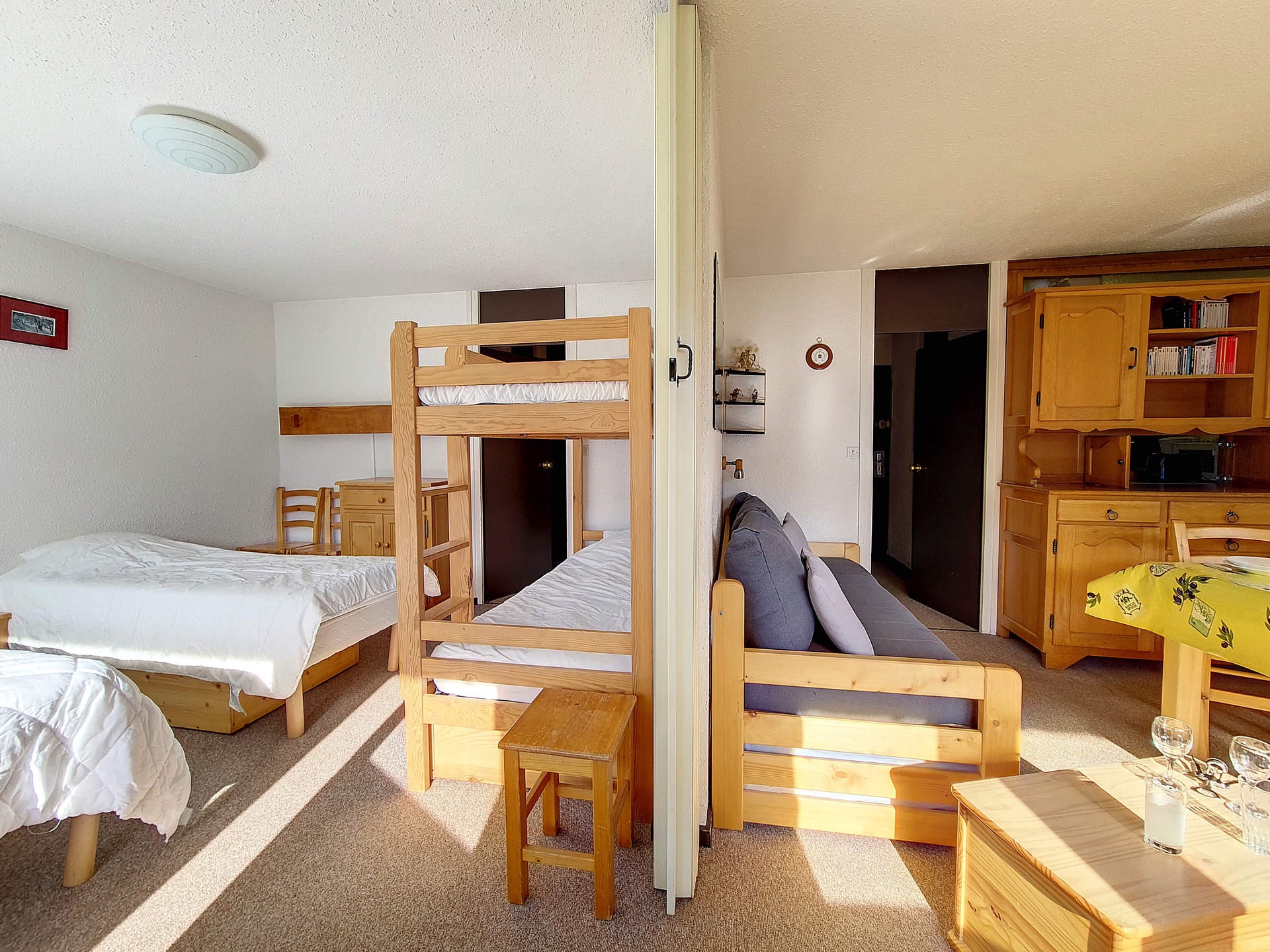 Bedroom: 2 twin beds (doubled bed)+ 2 bunk beds.