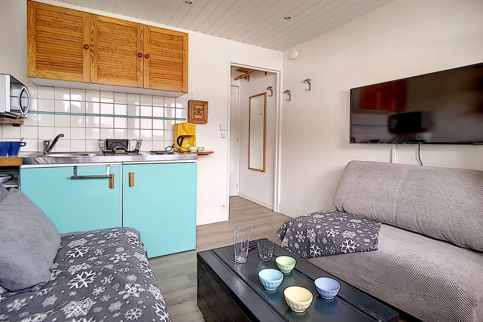 Living room with 1 sofa BZ convertible into bed for 2 people Equipped with a flat screen TV.
