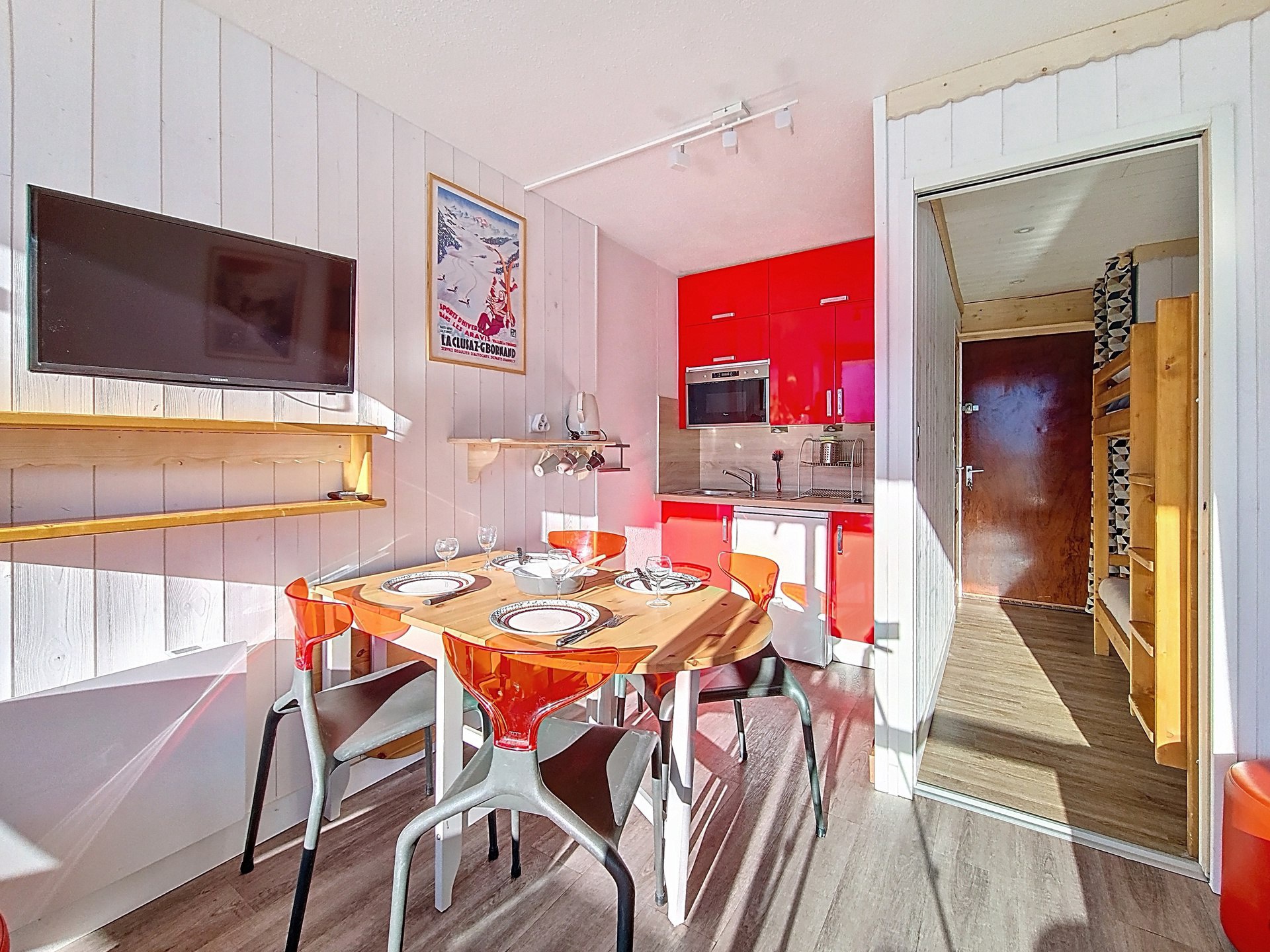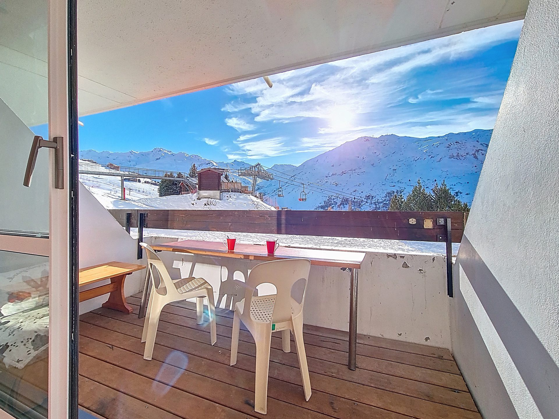 Studio of 19 m² for 3 persons. It is on the 2nd floor with lift and with a South/West facing balcony with beautiful mountain view. Exceptional view and sunshine.