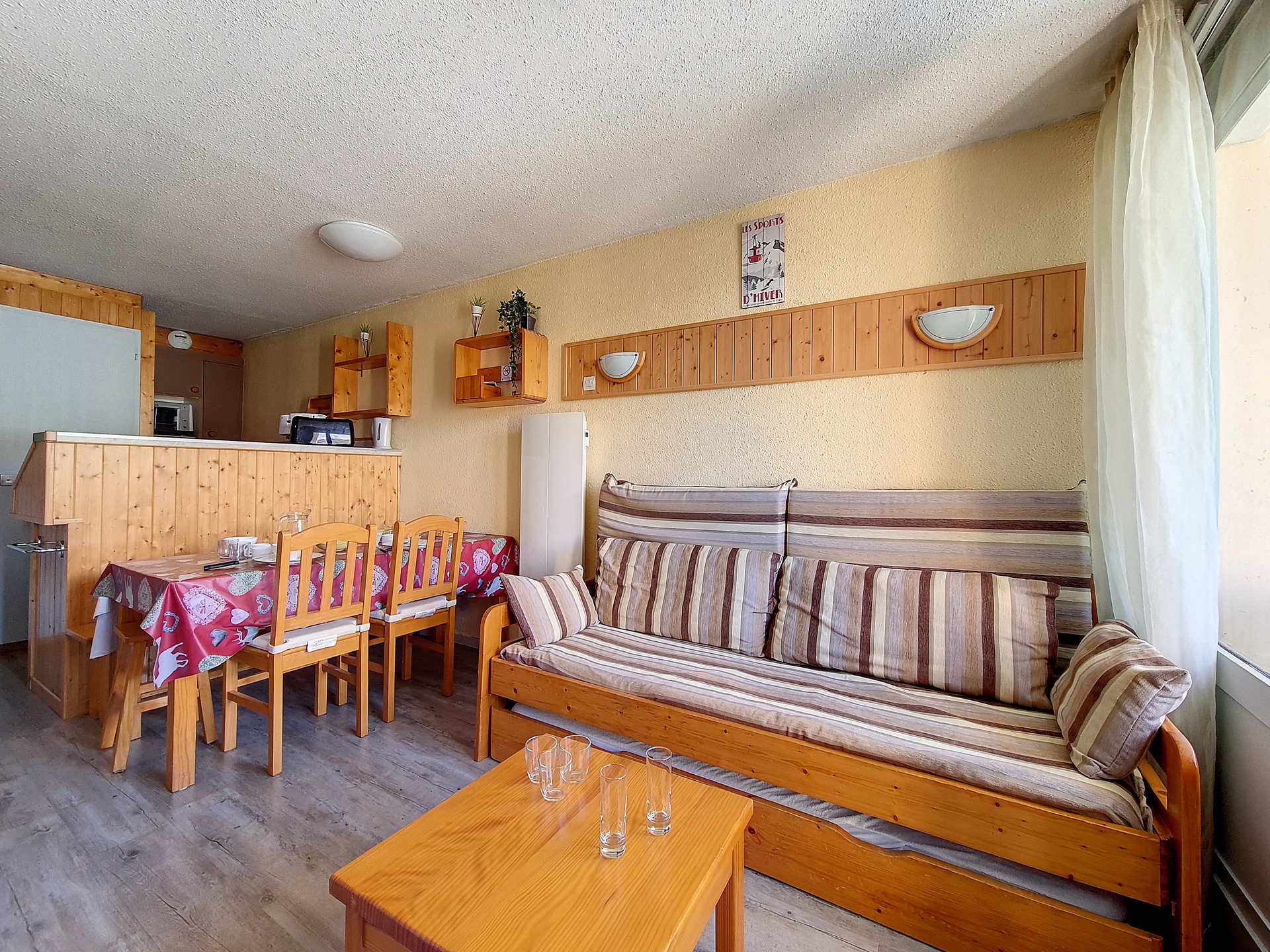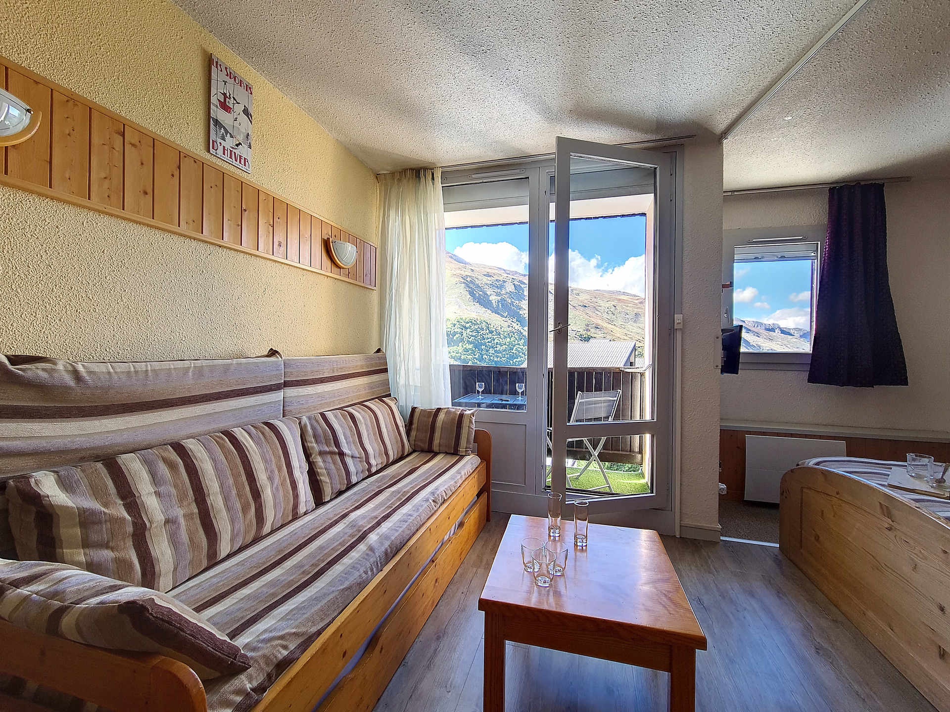 Living room : 1 single bed and 1 pullout bed. A flat sreen television.