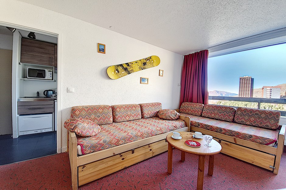 Two-roomed apartment of 30m², for 4 people with 2 North-facing balconies. It is situated on the 7 floor with lift.
