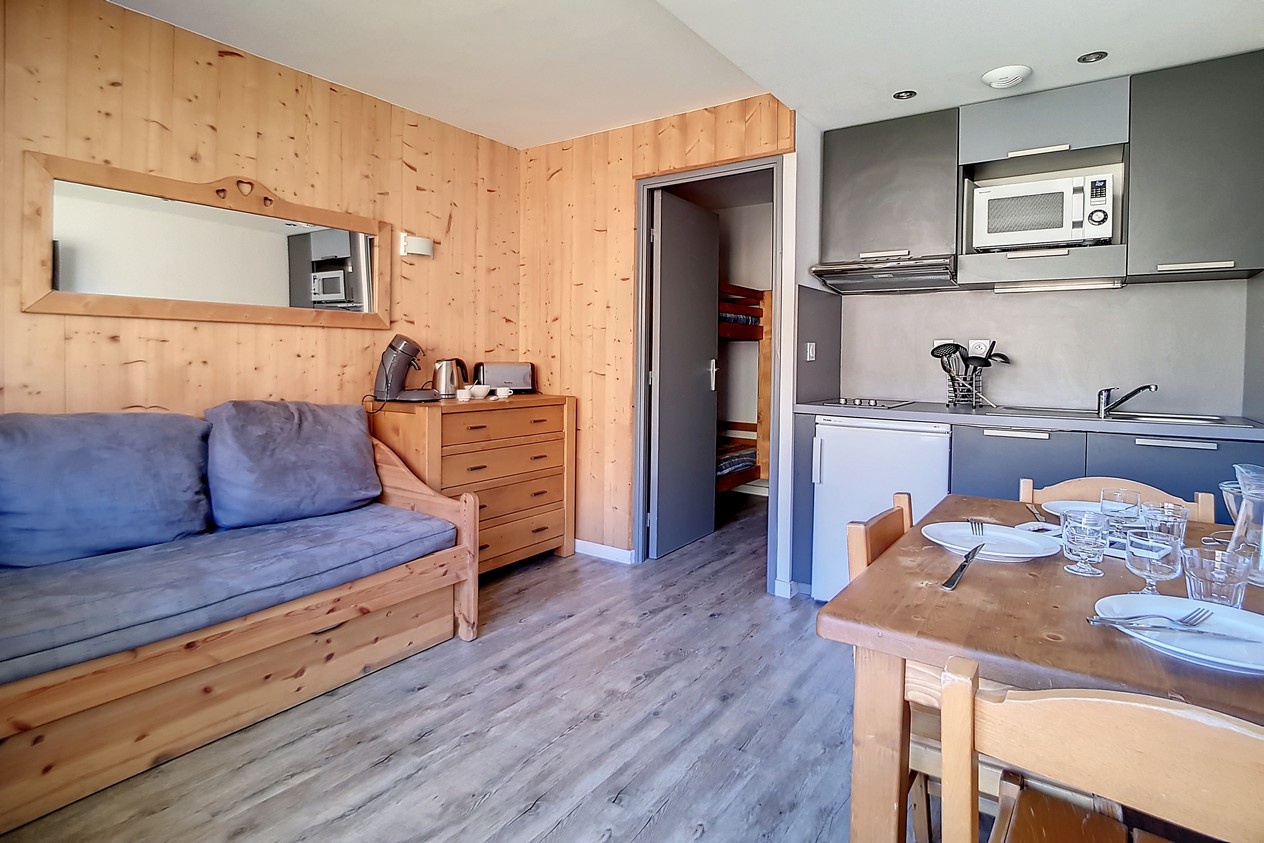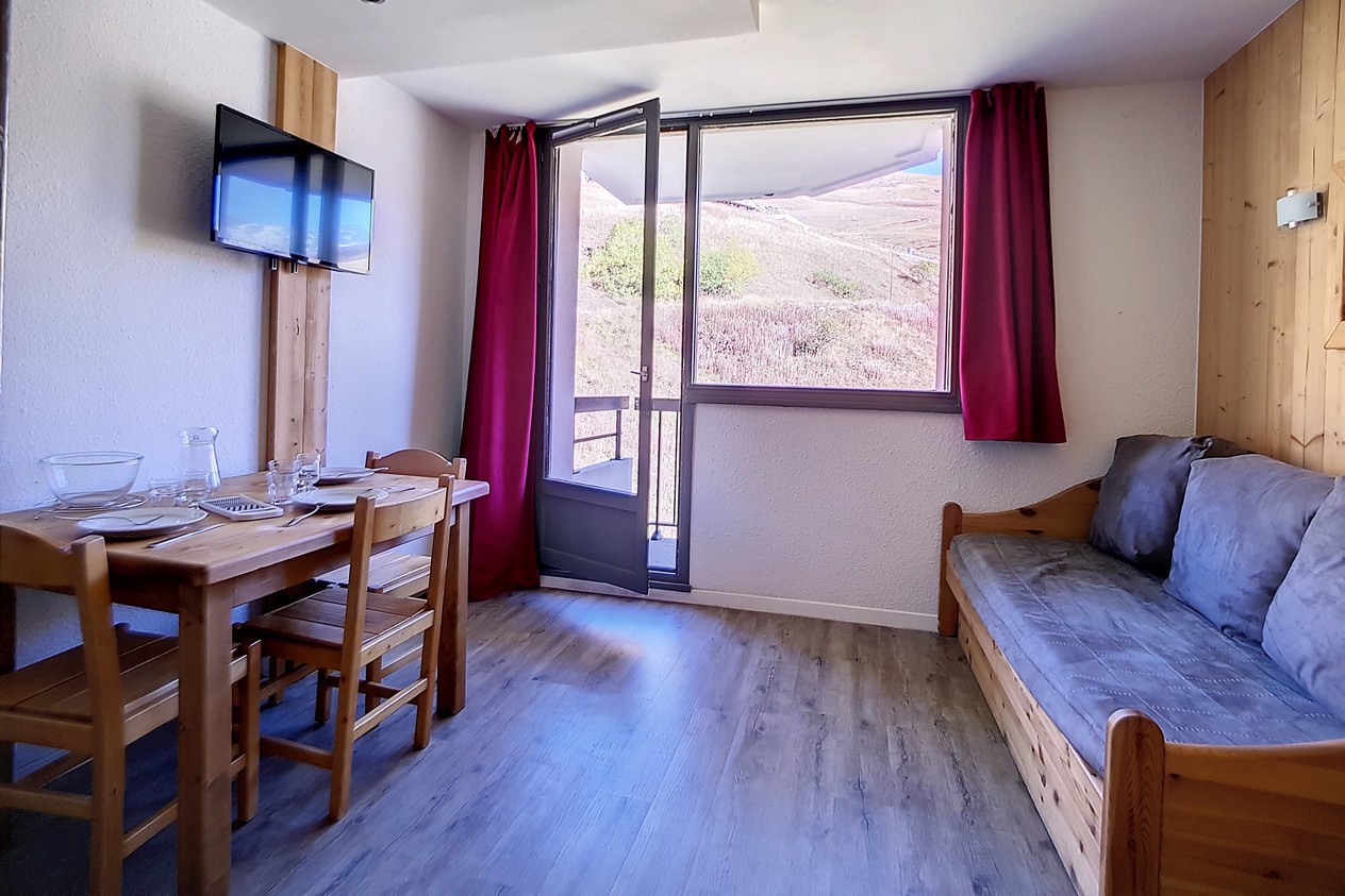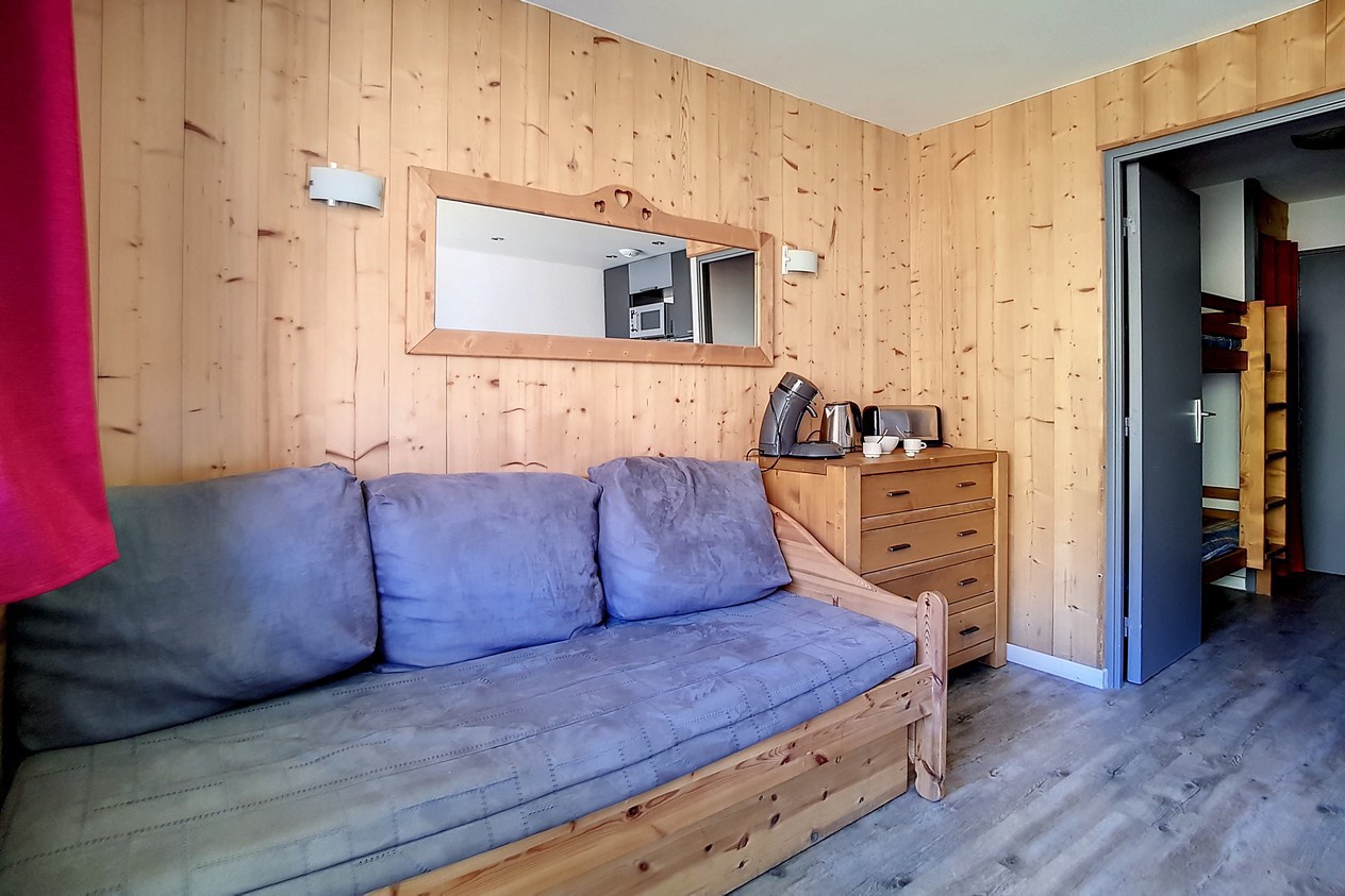 Living room : 1 single bed and 1 hideaway bed. Flat screen TV.