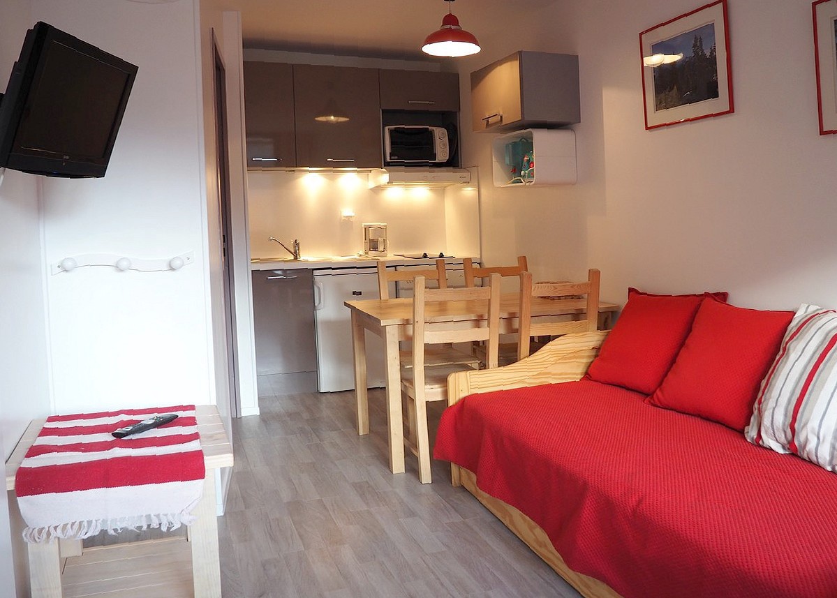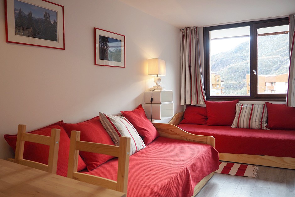 Living room : 1 sofa-bed for 1 person and 1 hideaway single bed. Equipped with a TV.