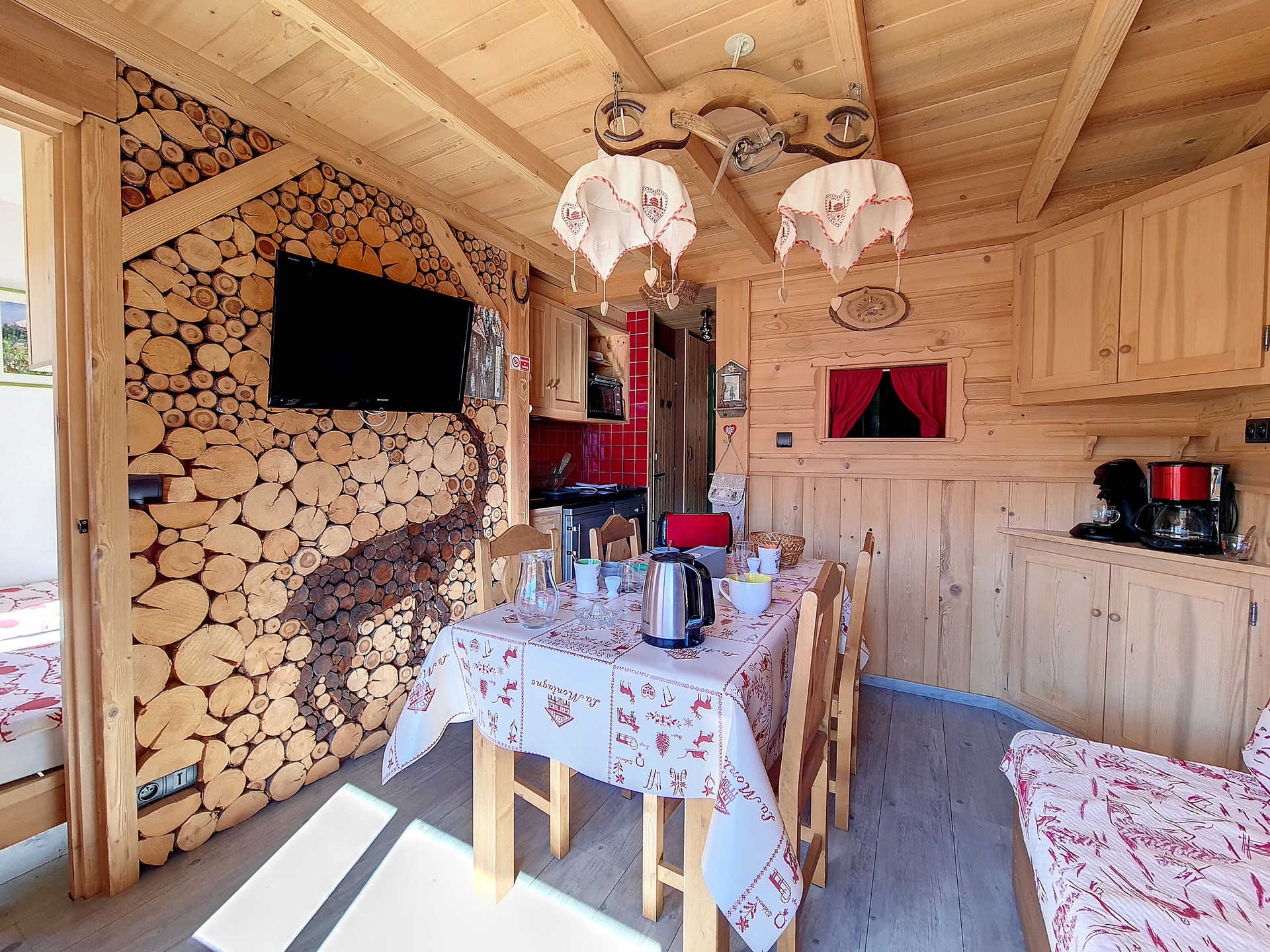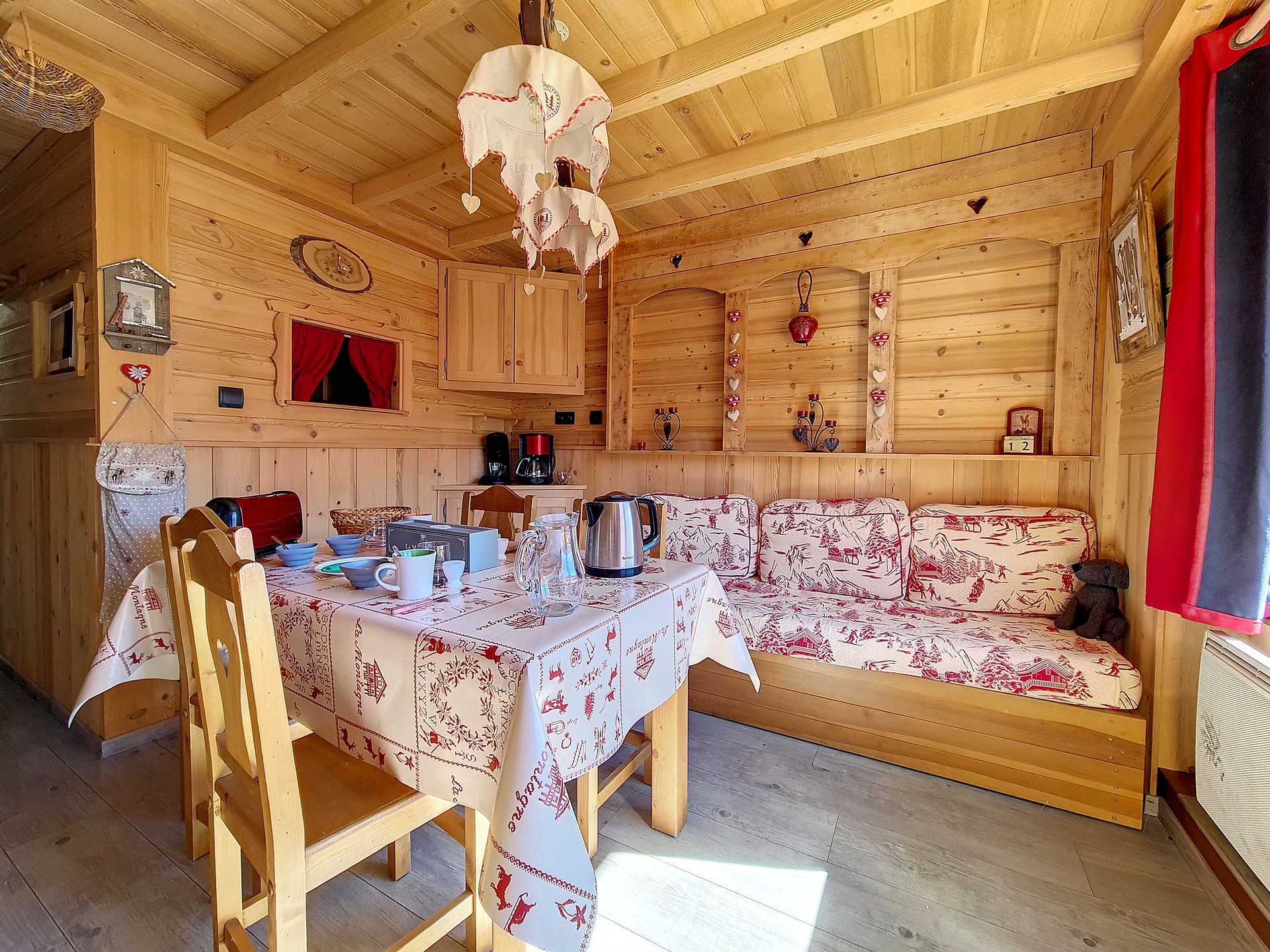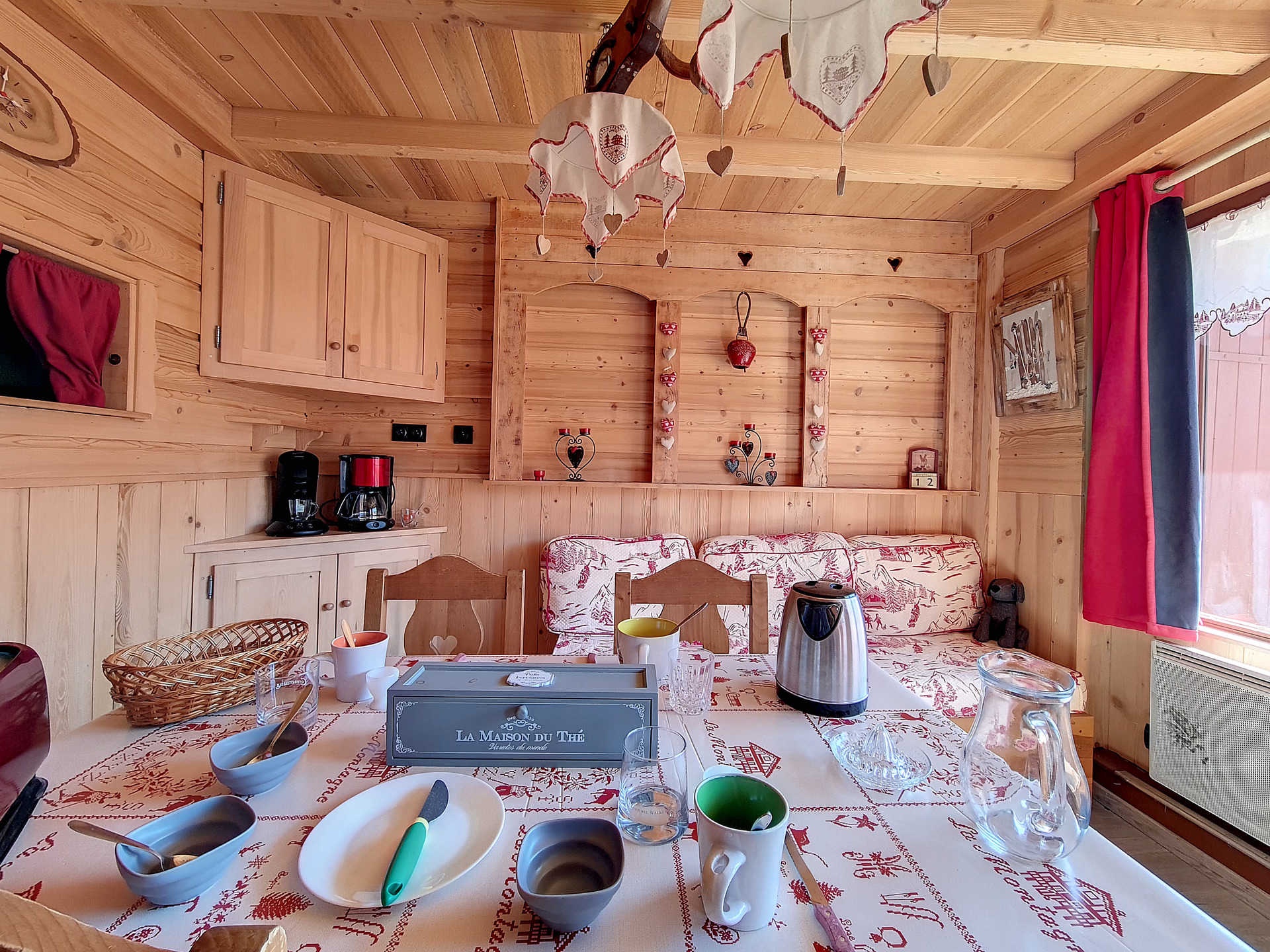 Cabin in the entrance, separated with a curtain: 2 single bunk beds.