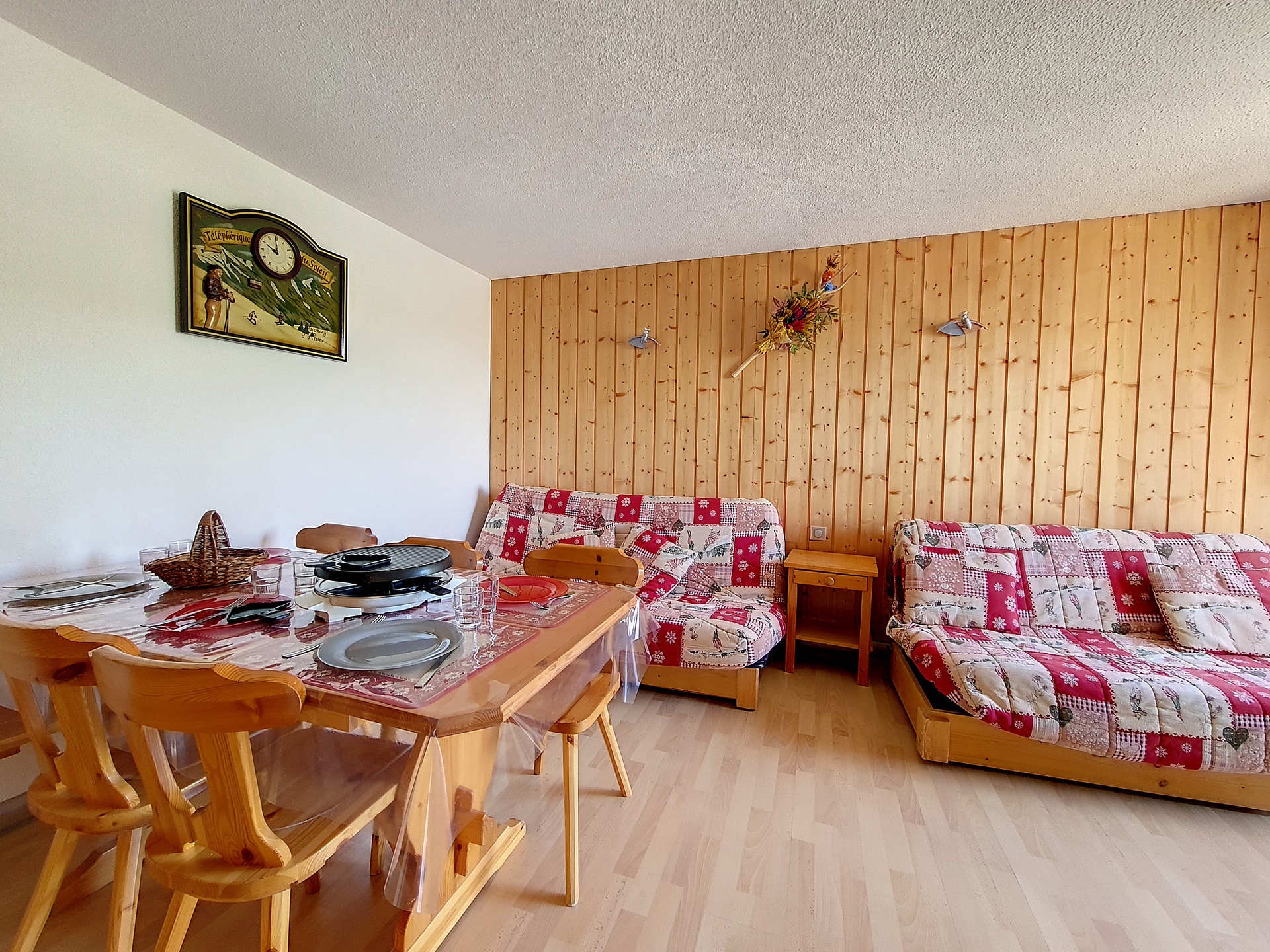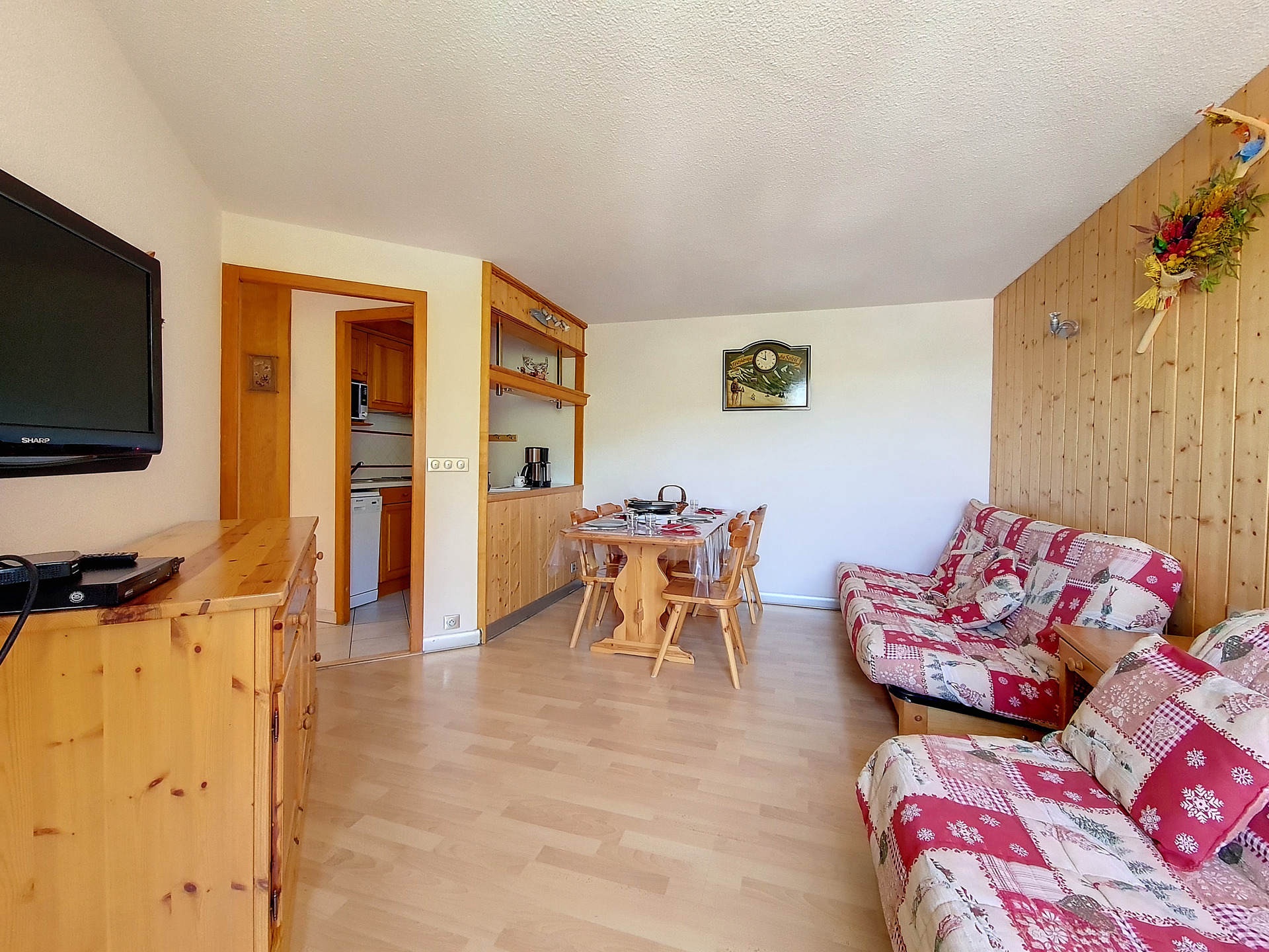 Living room : 2 double sofa beds. Television with DVD player.