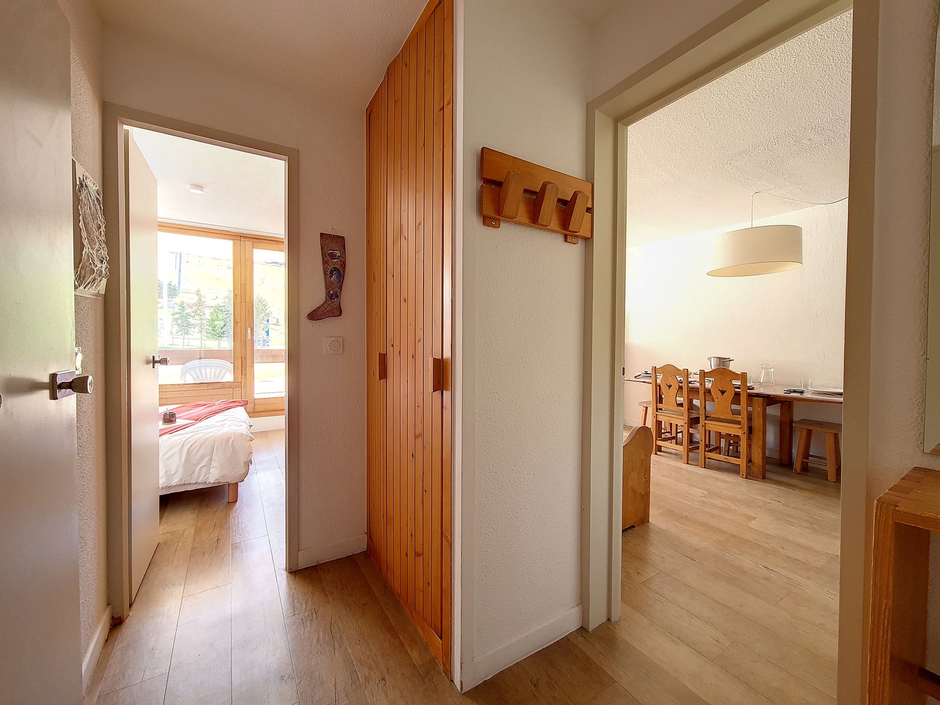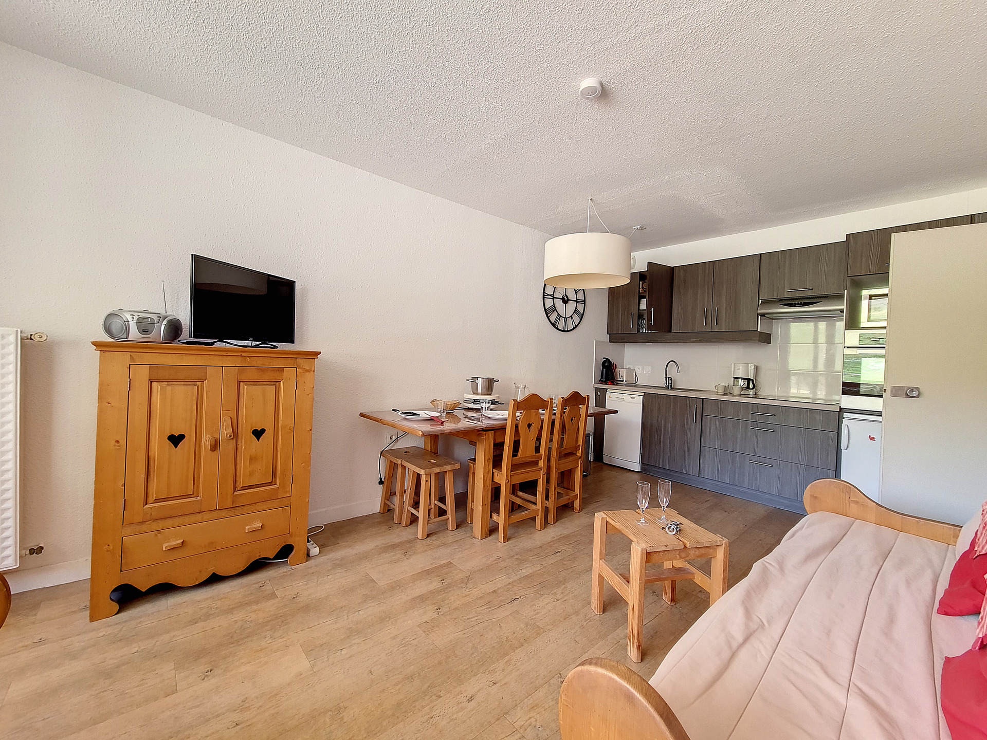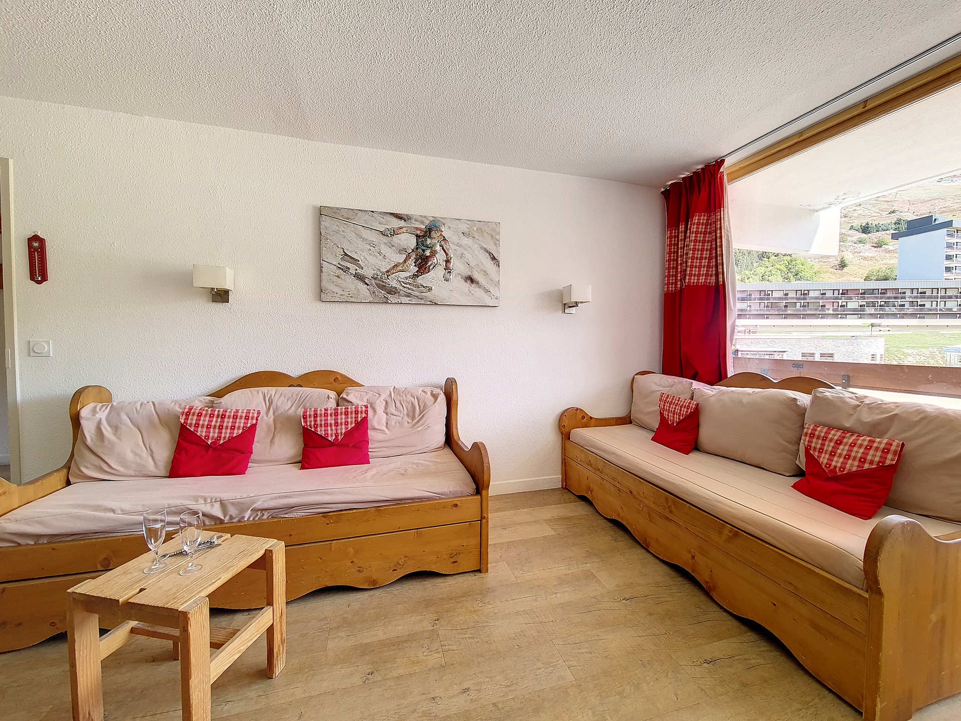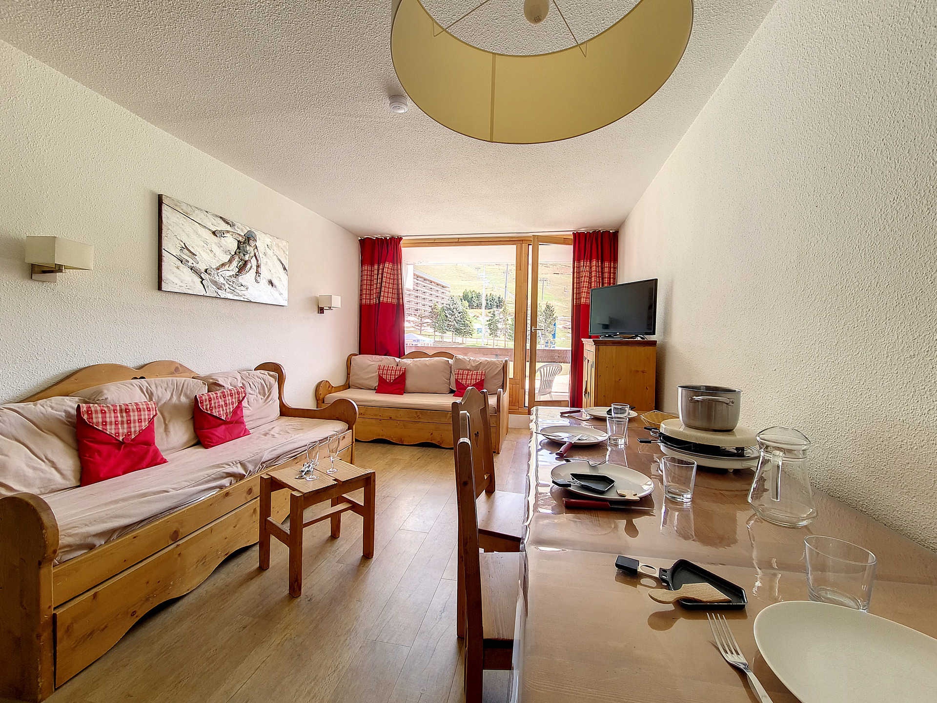 Nice 2-roomed apartment of 36m² for 6 people. It is situated in a ski in ski out residence, nearby the departure of the ski lifts and the meeting point of the French ski school (ESF), with access to all kinds of services of the resort. The apartment has a South-facing balcony.