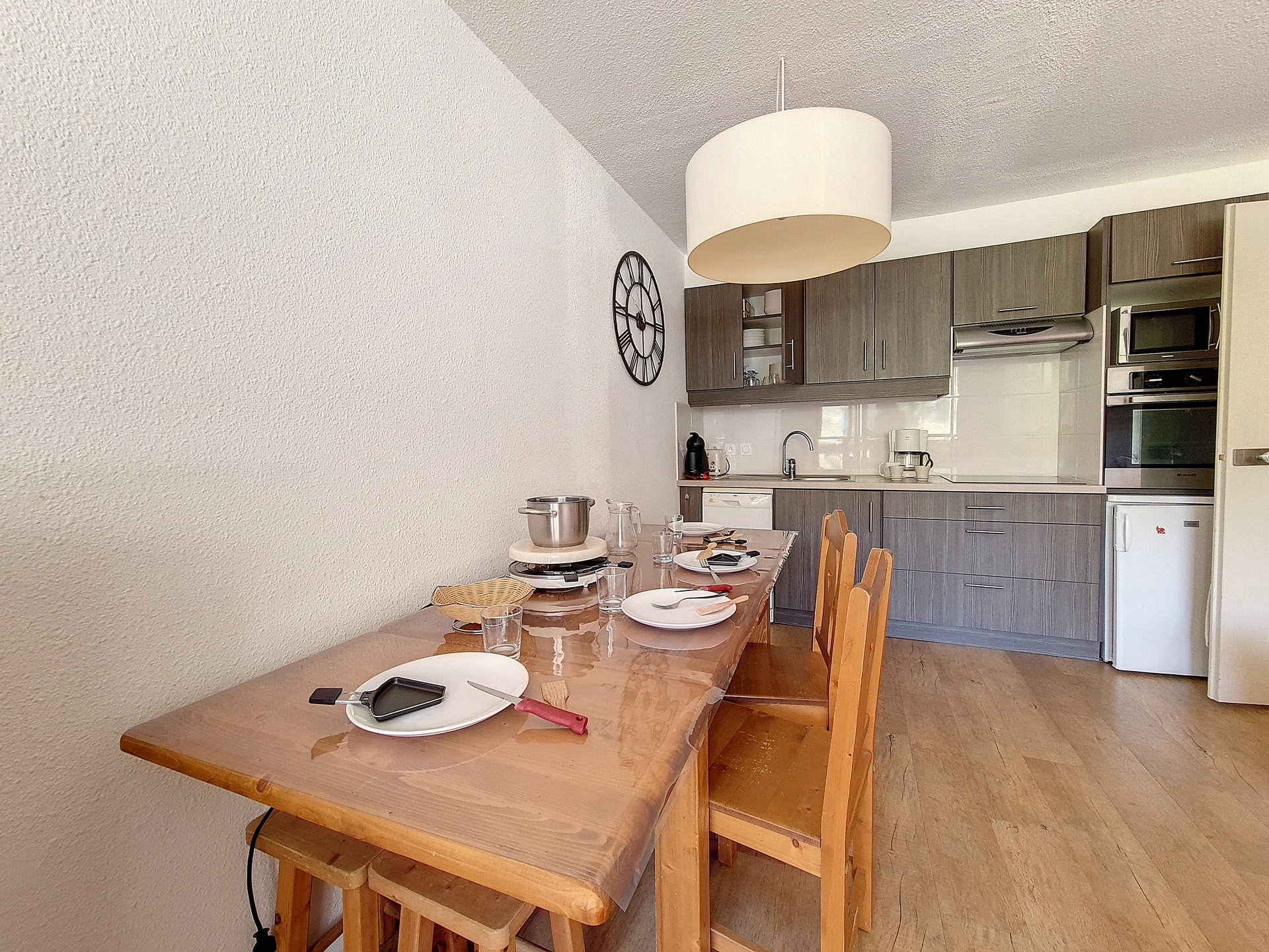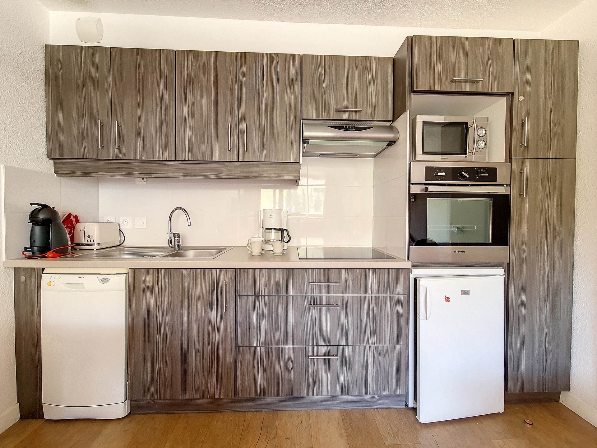 Kitchen : traditional oven + microwave oven, fridge, 3 induction hotplates, extractor fan, dishwasher, coffee maker.
