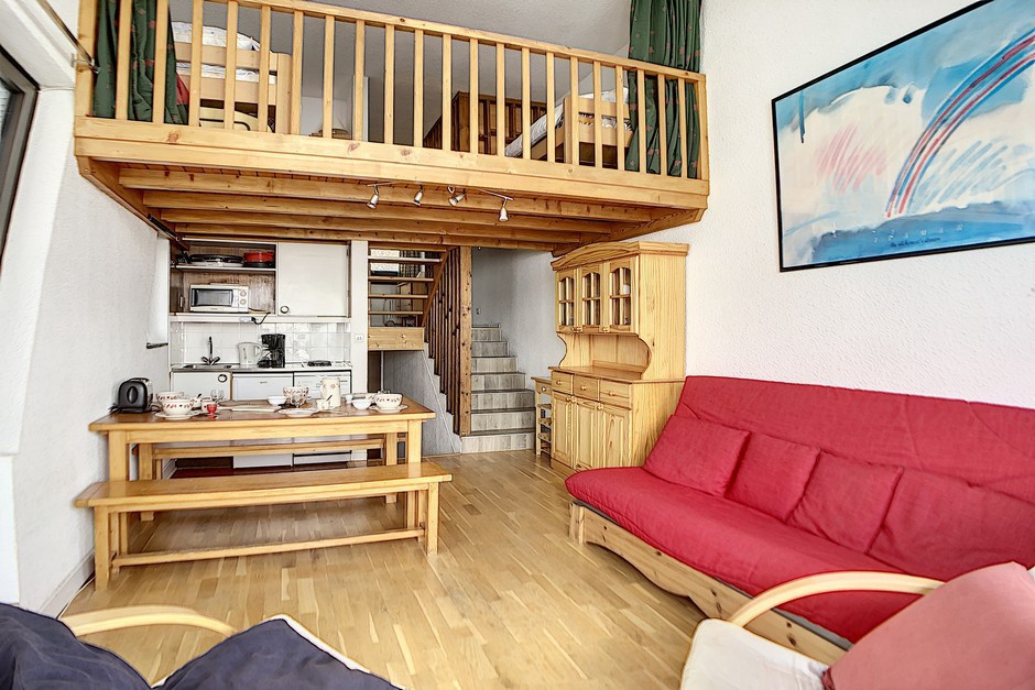 Apartment of 2 rooms in duplex 39 m² with mezzanine of 8 m² (-1.80m hight), for 6 people with a South/West-facing balcony on the 7th floor with lift.
