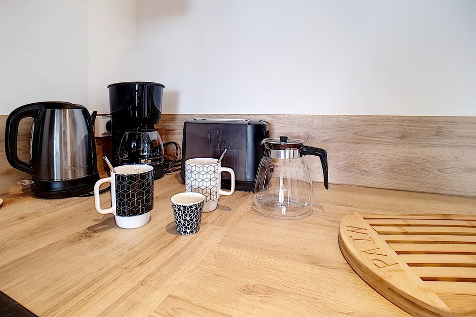 Kitchen : 4 hotplates, oven, micro-wave oven, fridge and dishwasher, electric kettle, coffee maker, toaster.