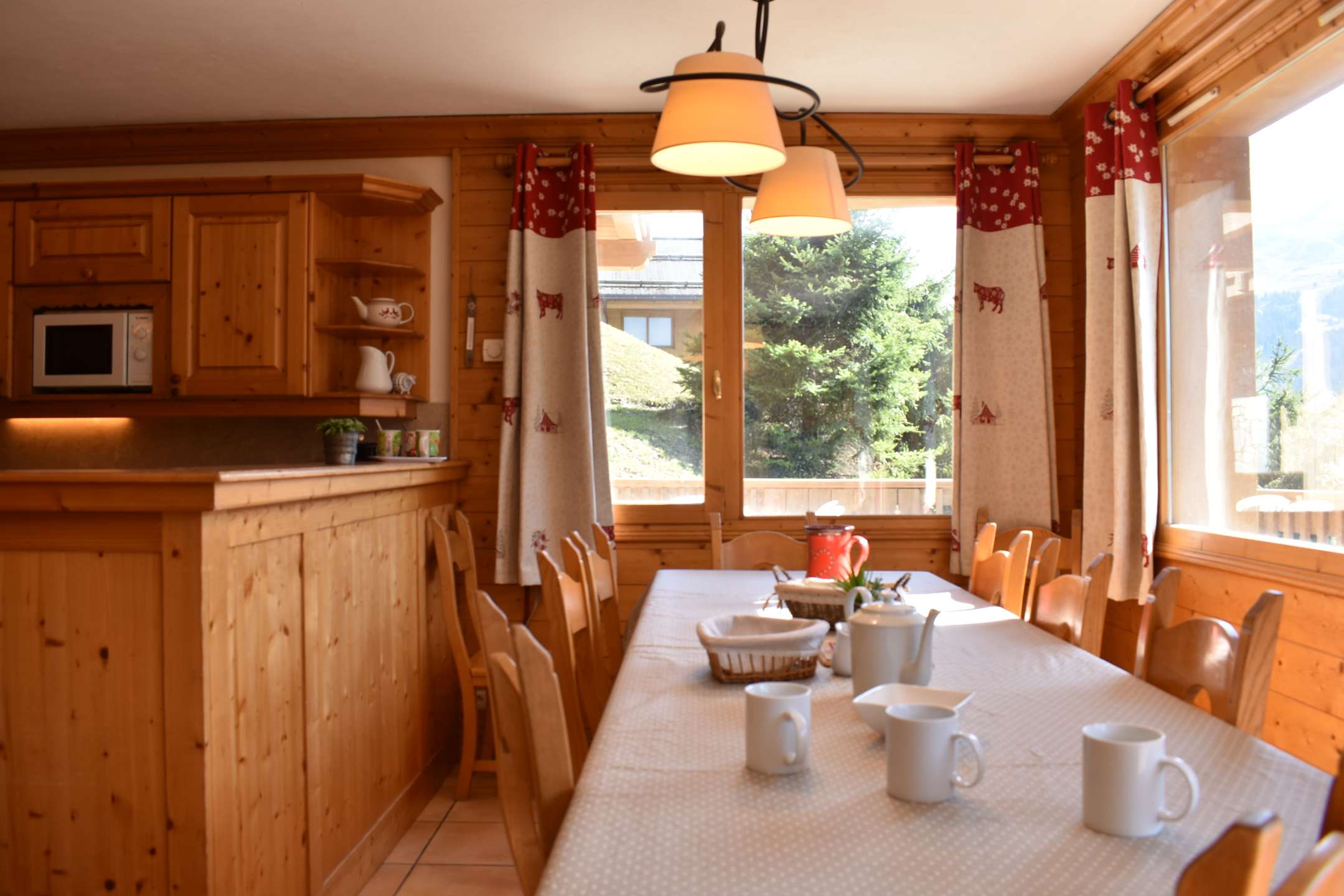 The Morel chalet is located in a quiet area, 600m from the resort center, shops, restaurants, 50m from the shuttle stop, 900m from the slopes by the Tourist Office escalator. This chalet is on 4 levels. On the ground floor, it includes 1 closed garage and a shoe dryer. On the 1st floor, a sauna with shower, a laundry room with washing machine and dryer and a rest area. On the 2nd floor, a large living room with a fitted kitchen with dining area, a lounge with fireplace opening onto a West balcony and a South terrace and a bedroom with a (160x200) double bed and its adjoining bathroom and WC. On the 3rd floor, you will find 3 bedrooms each with 2 single (90x190) beds that can be pushed together and an adjoining shower room and WC. On the 4th floor, 1 bedroom(80x190) with a set of bunk beds with an adjoining bathroom with WC.