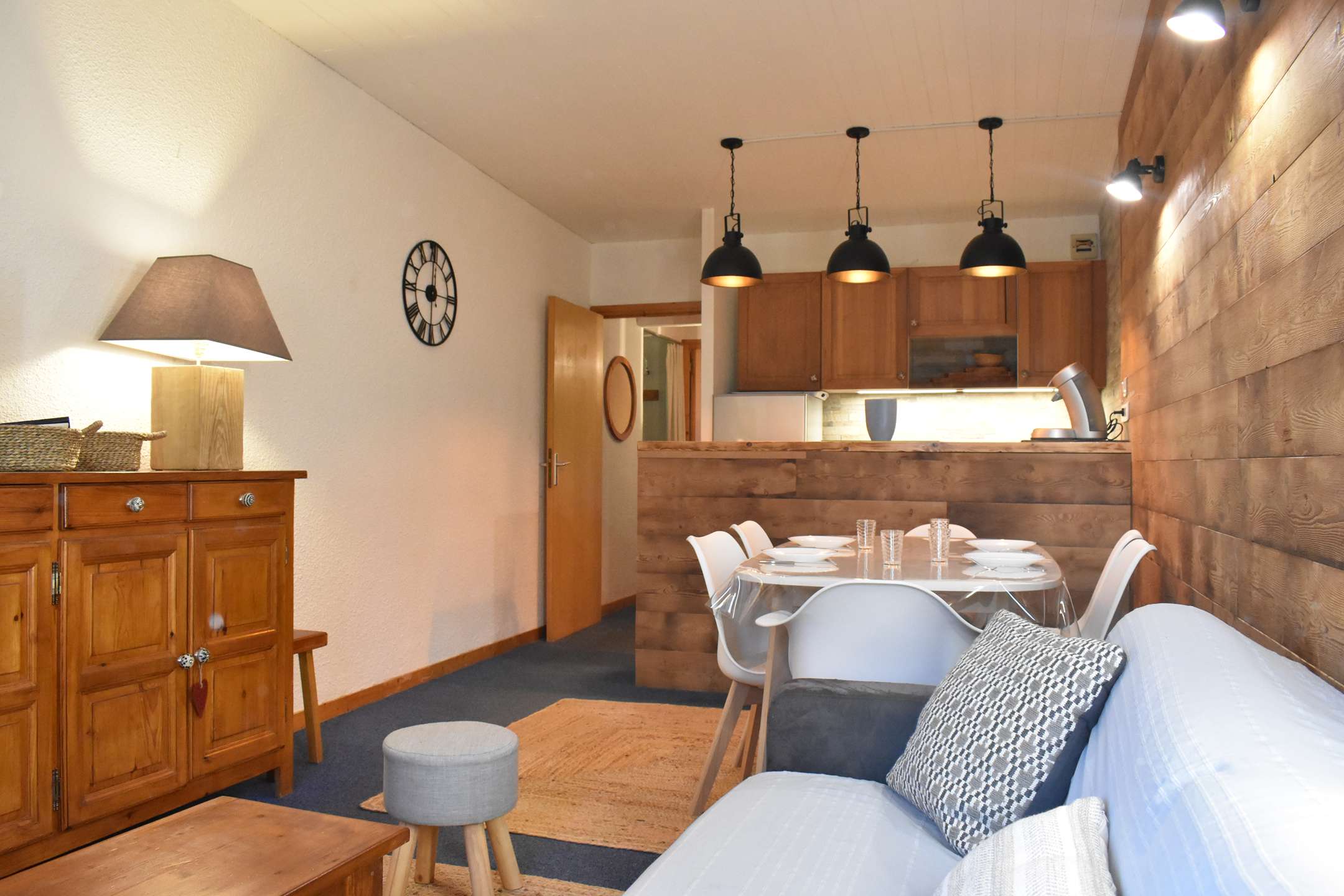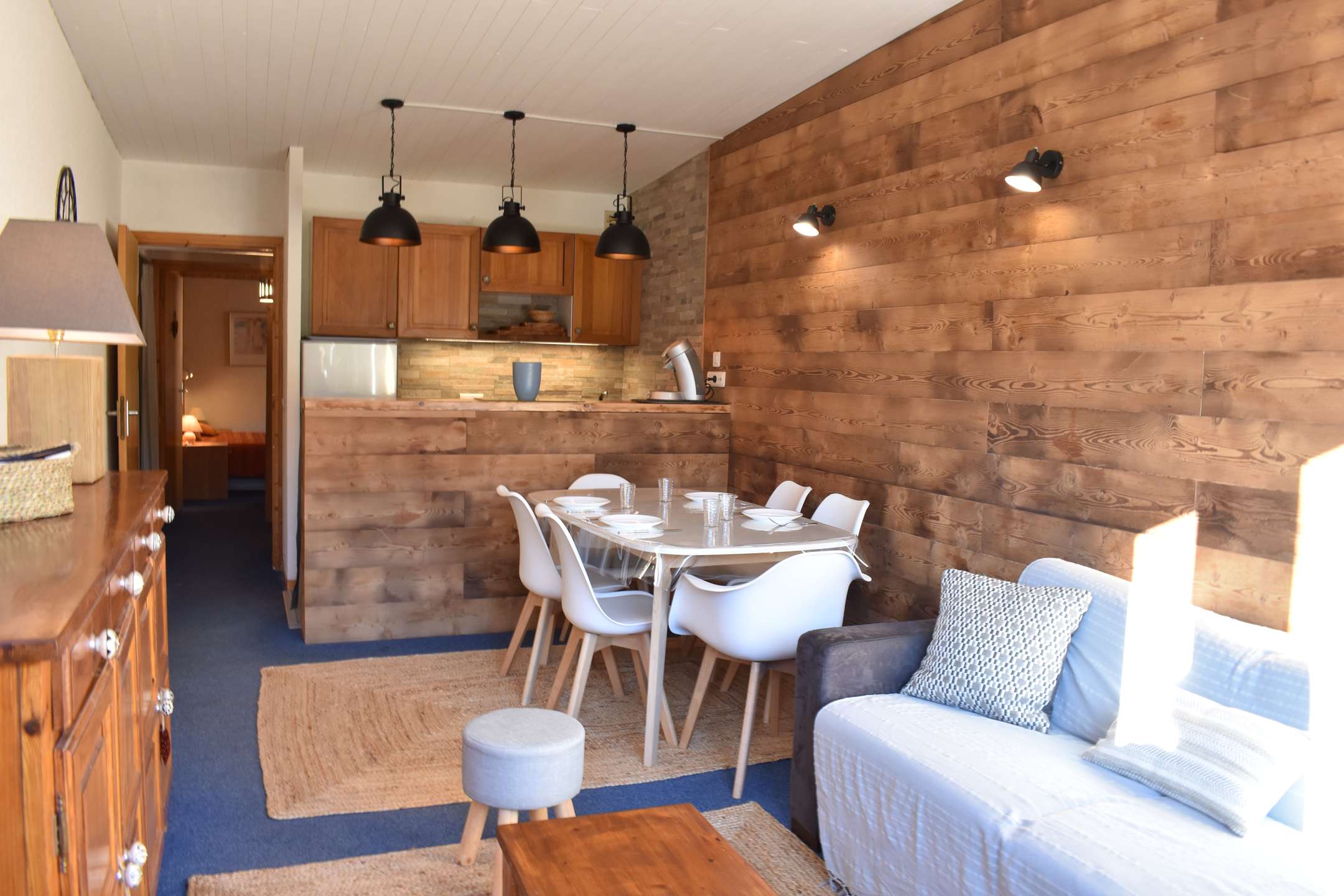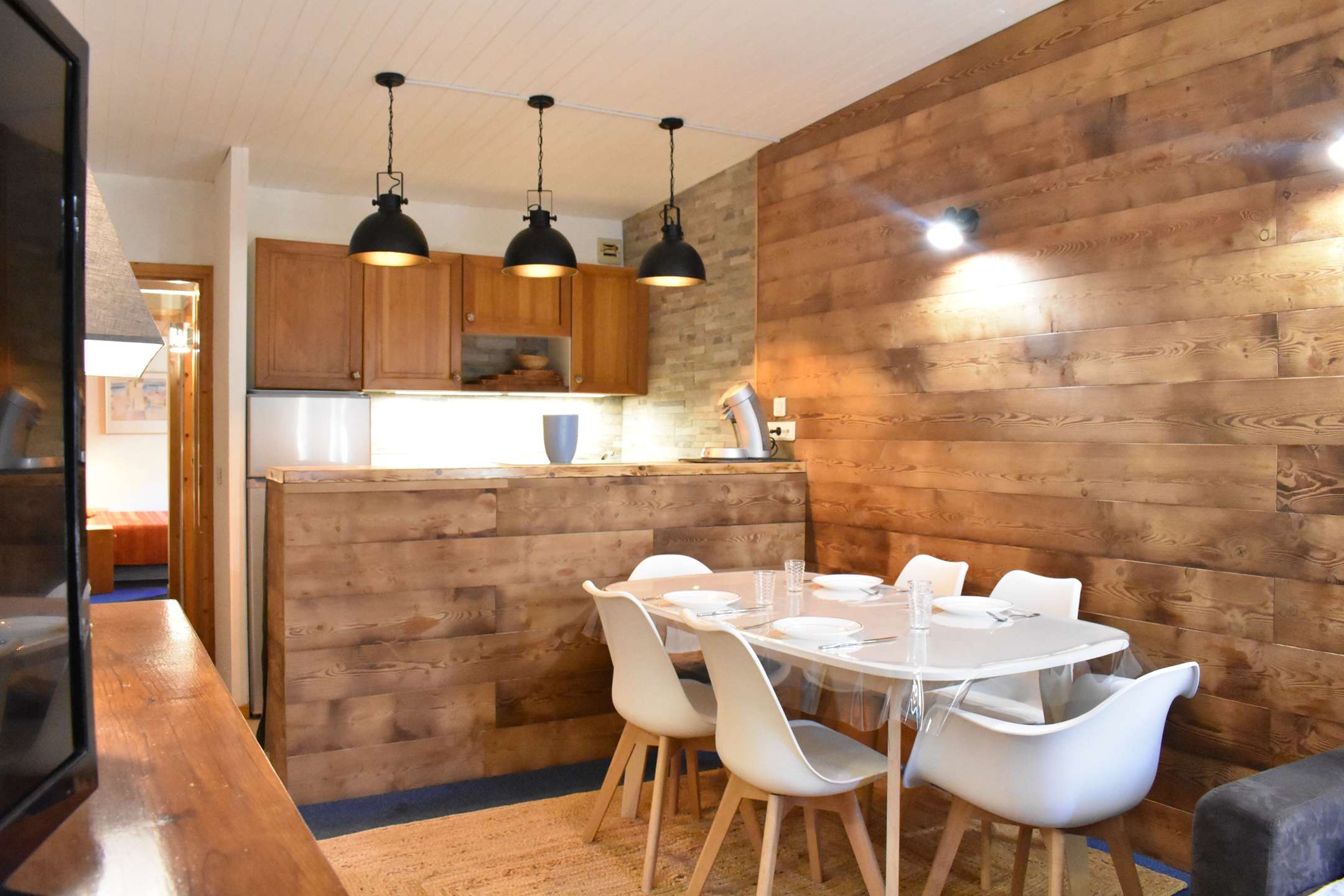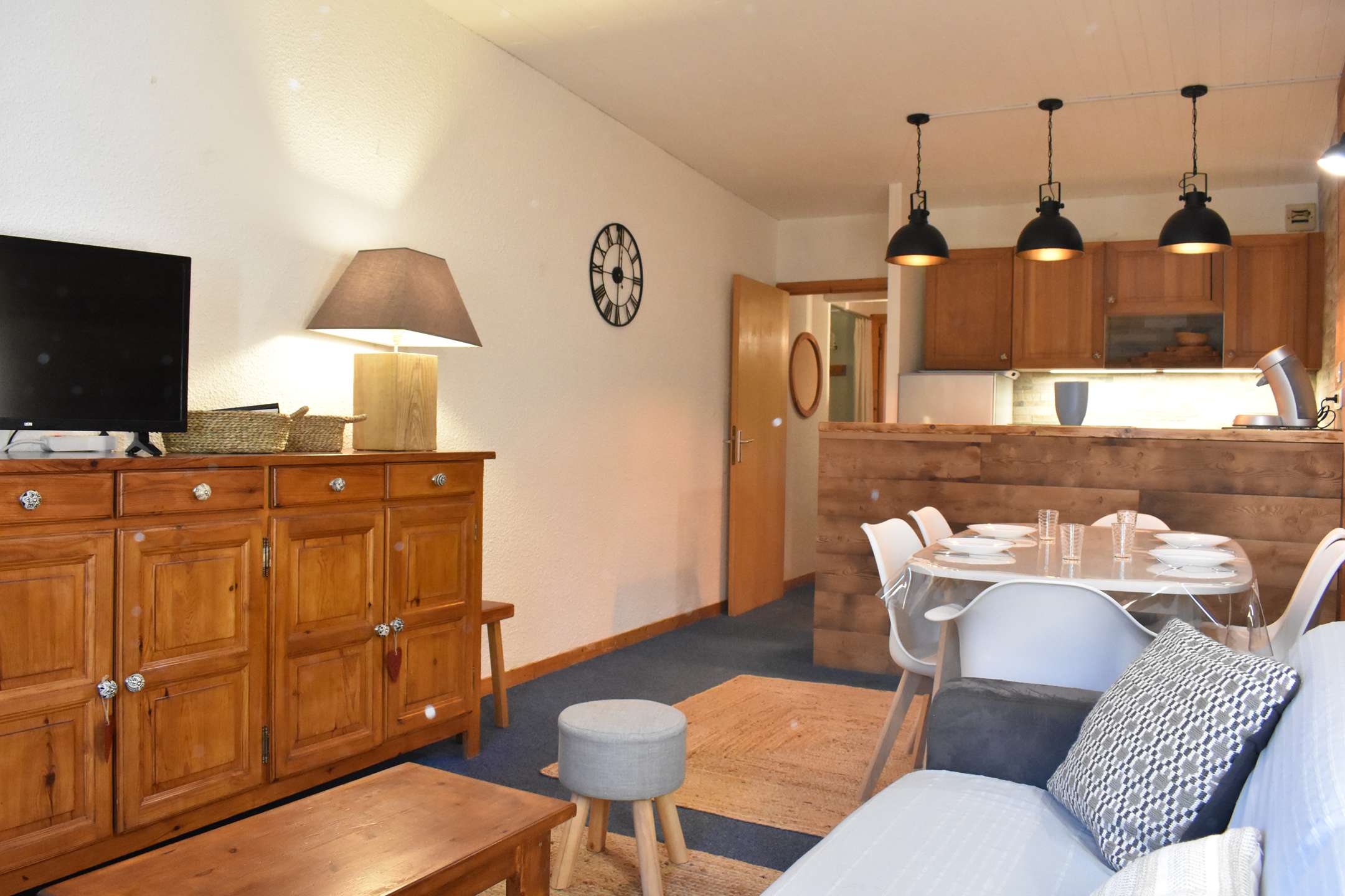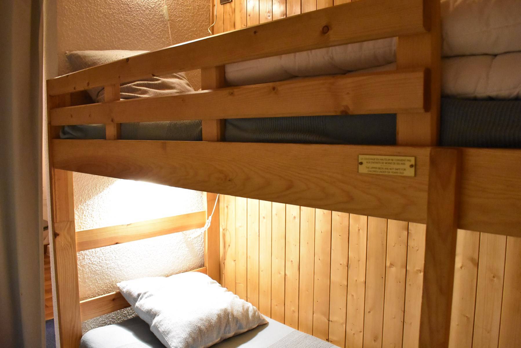 This snow apartment located on the 2nd floor, includes a kitchen equipped with a dishwasher open to the living room with 1 sofa bed convertible into 140, a television and a south-facing balcony, a cabin area at the entrance level with 1 set bunk beds, 1 bedroom with 1 double bed 140, 1 bathroom and a separate toilet.