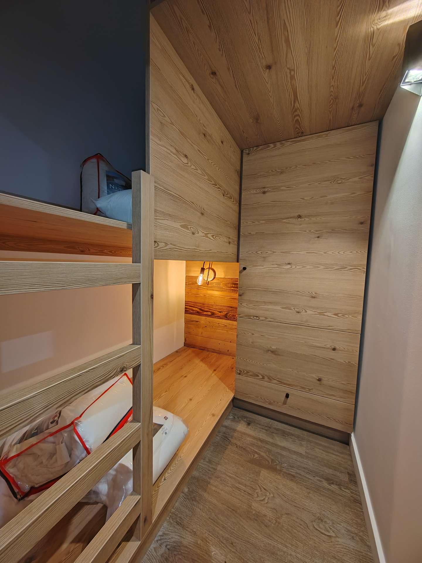 - a bedroom with 2 bunk beds with plenty of storage,