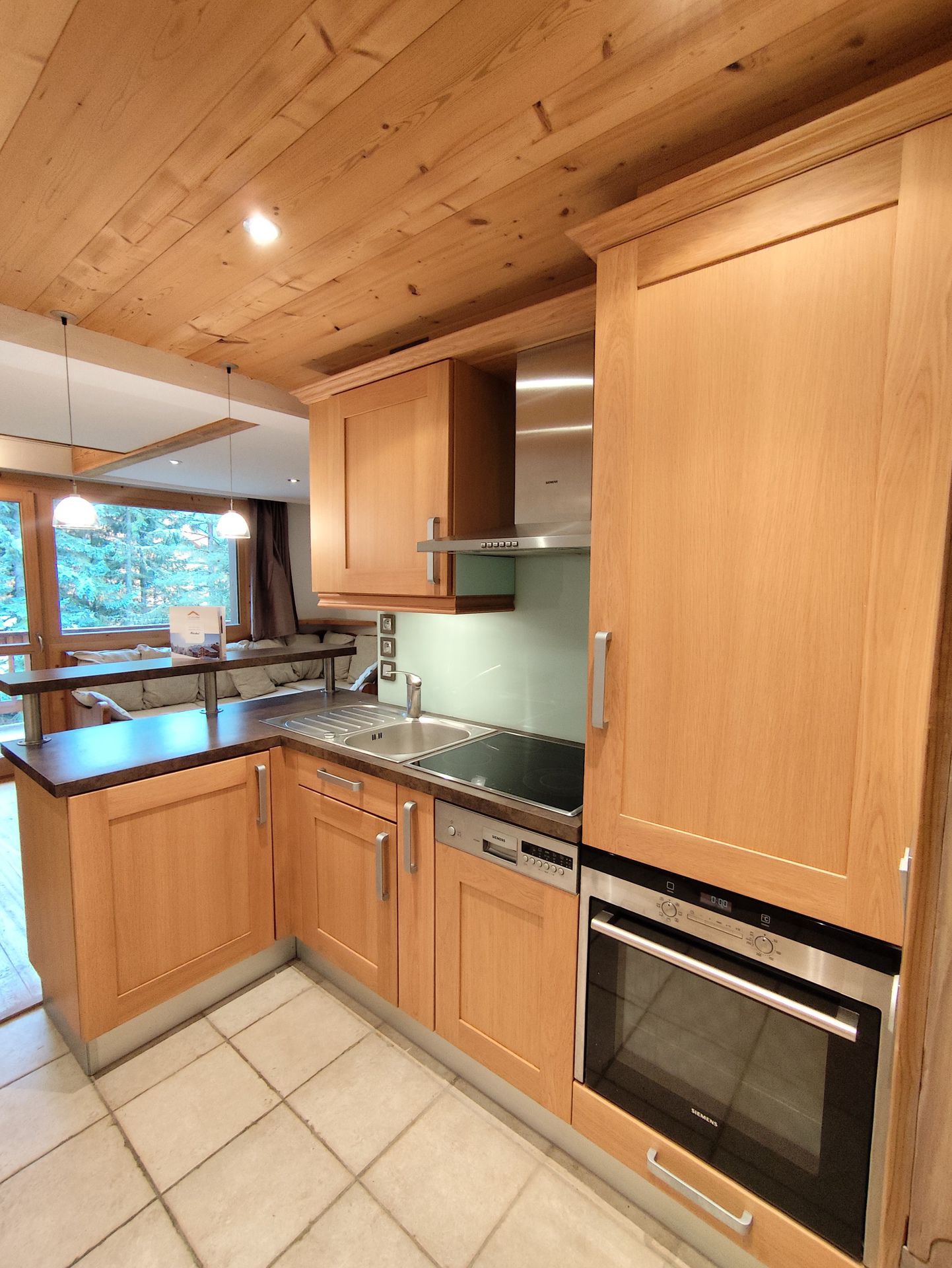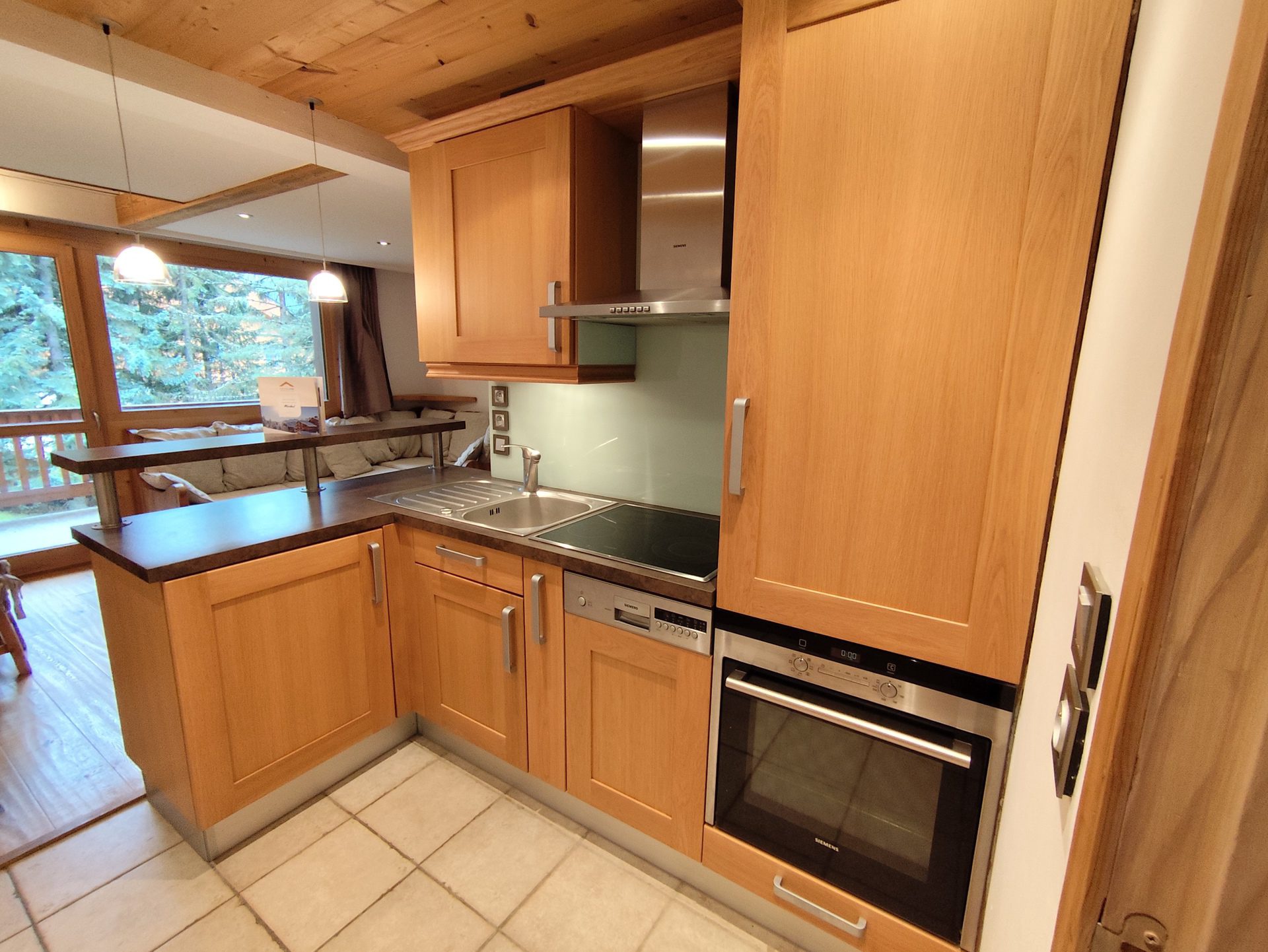 Equiped with hob, and oven, a dishwasher and a fridge