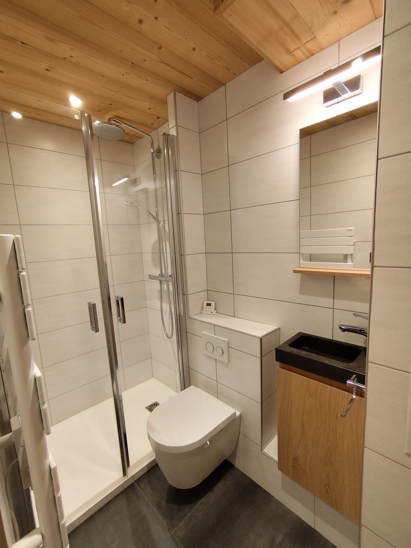 Delightful corner apartment on floor -1, south facing balcony, completely renovated in a chic contemporary spirit with one of the most beautiful views of the resort on the mountains, in the heart of Meribel. 54 sq-m (including 18sq-m under roof) apartment for 7 guest.