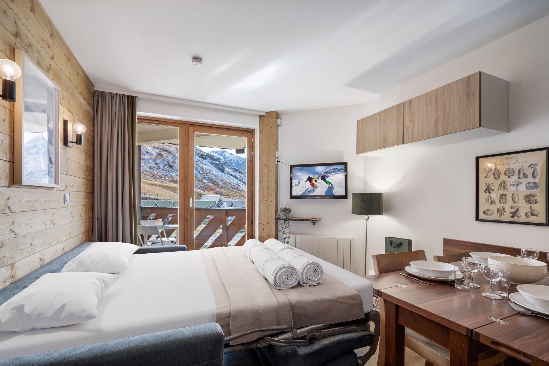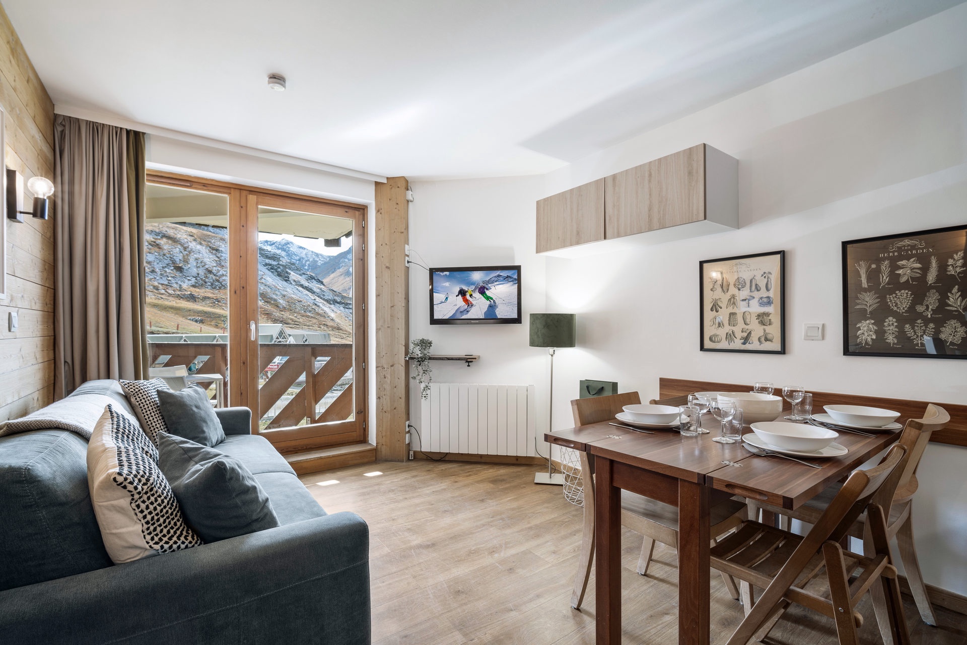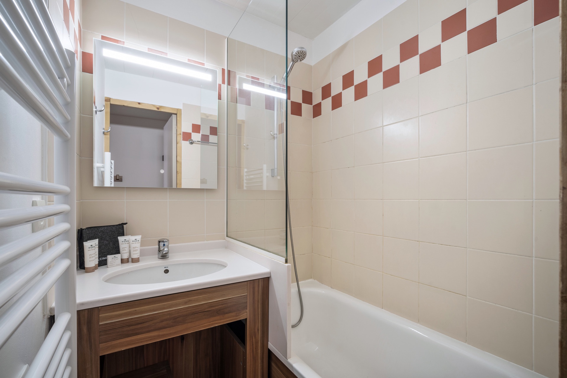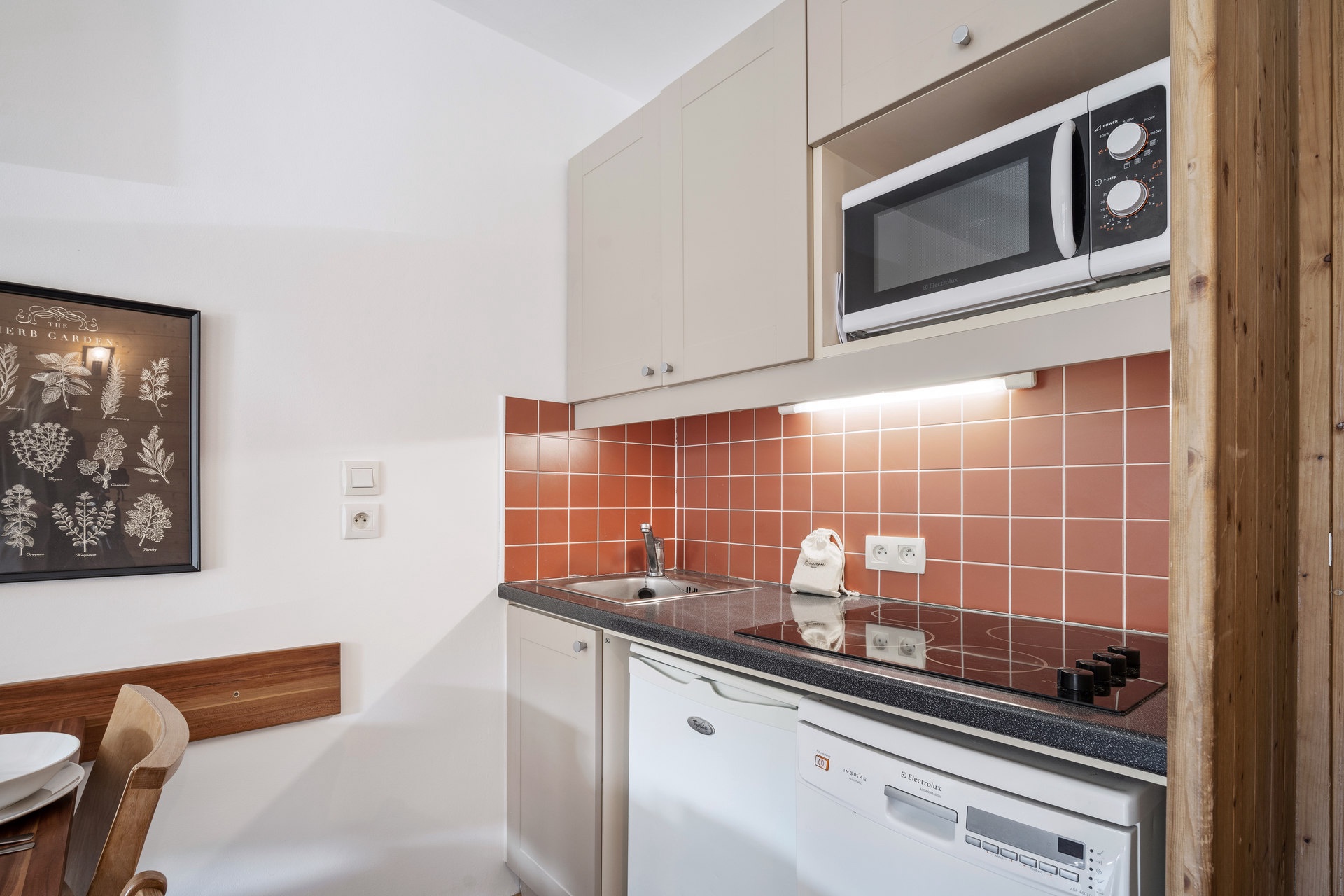 Welcome to this 27sqm appartment in Val Thorens, renovated to create a warm, modern space. The kitchen and furniture are decorated in contemporary colours, creating a welcoming atmosphere. The bathroom has a shower and a separate toilet for added convenience.