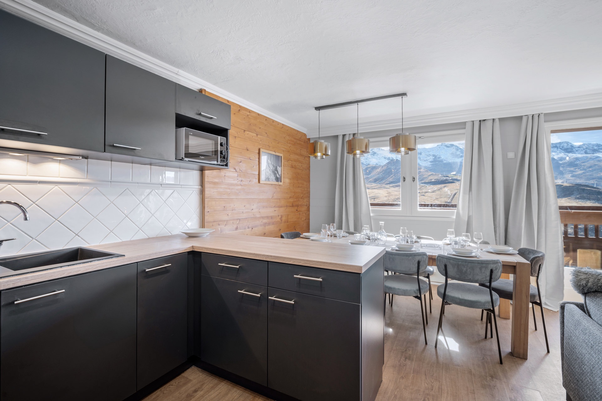 The ROSAEL4 apartment is ideally located in the Balcons district, with fast access to the slopes. The apartment is ideal for 10 people and boasts a large living room with panoramic mountain views.