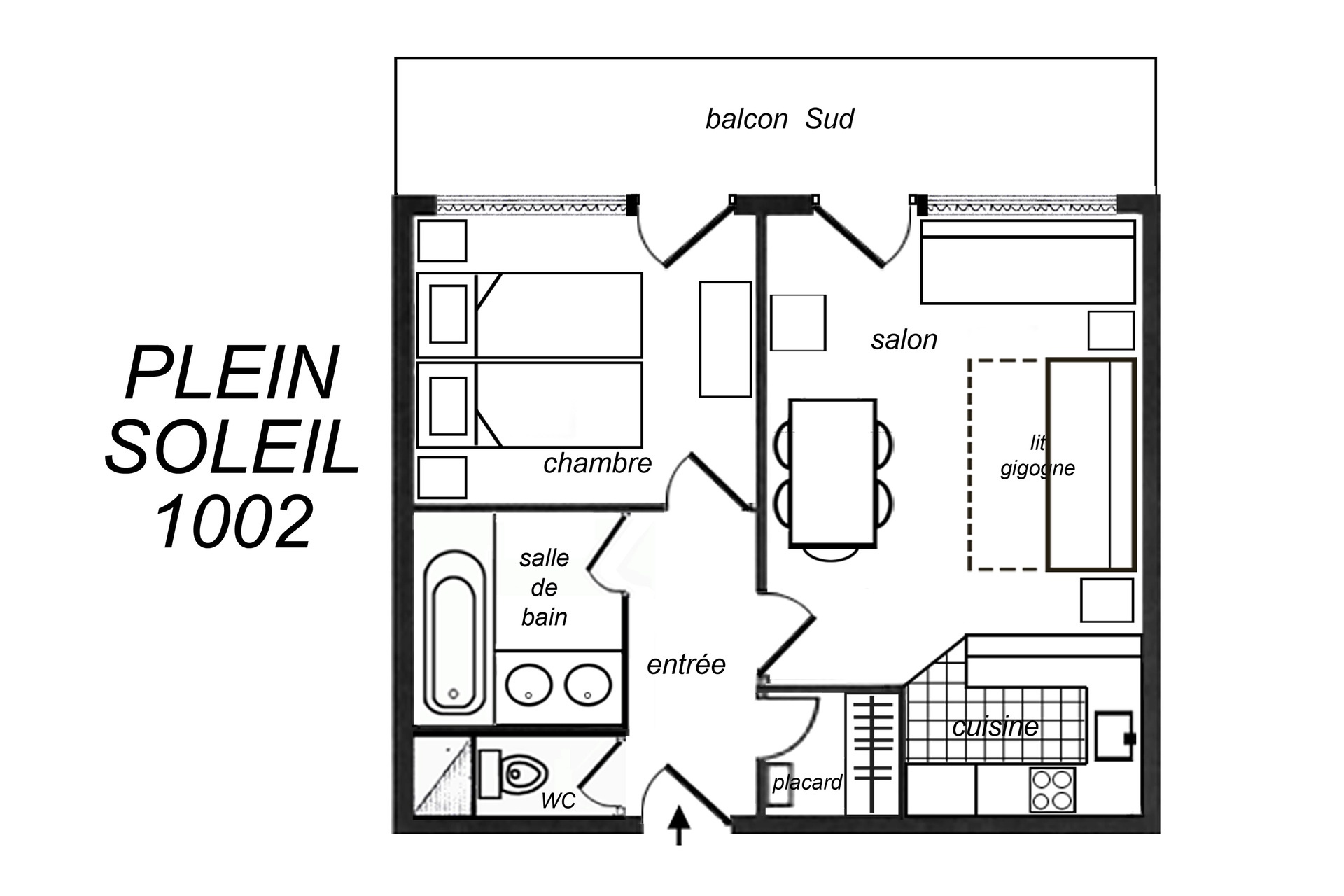 2 Rooms, 5 Persons, 40m², South Balcony