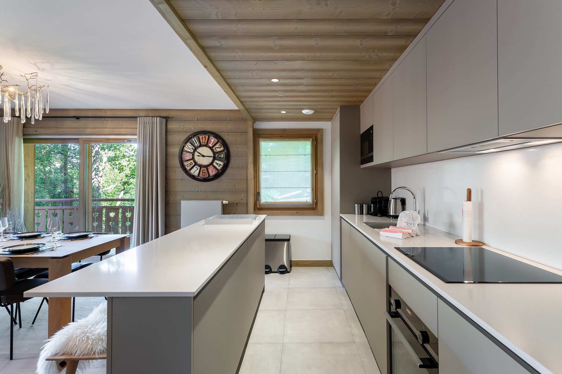 - Fully opened equipped kitchen and dining area on bar: fridge, deep-freezer, oven, micro-wave, dishwasher, induction hob, kettle, Nespresso, toaster and washing and drying machine