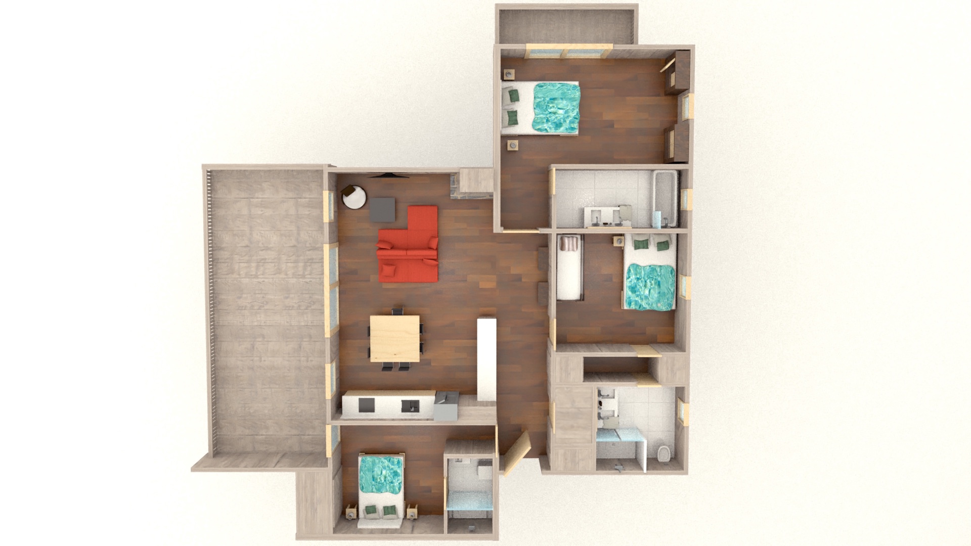 - Type of rental: 4 rooms (3 bedrooms)