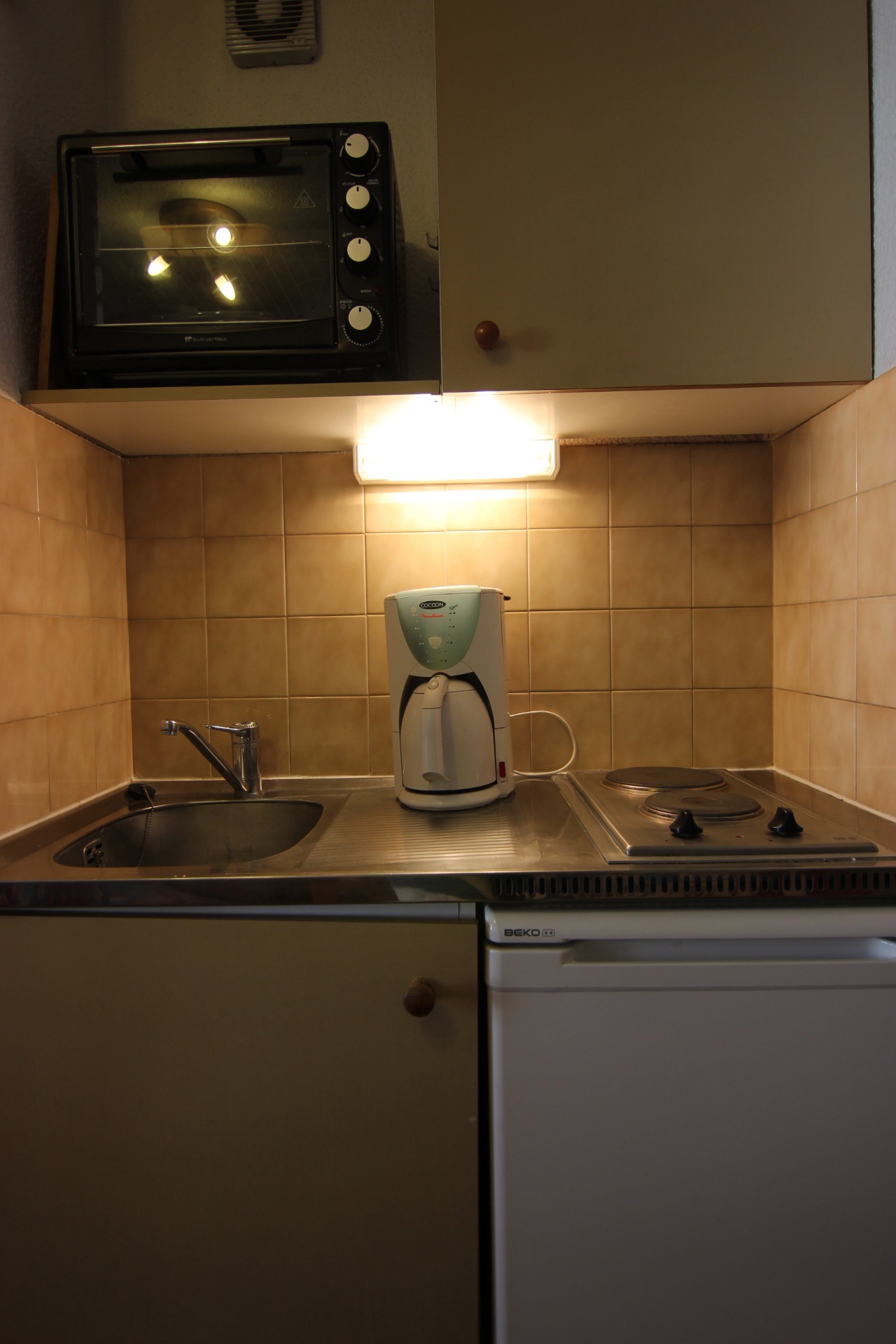 Kitchenette: mini oven, refrigerator and electric hobs