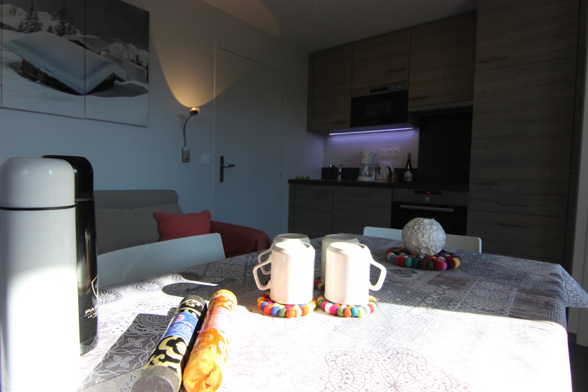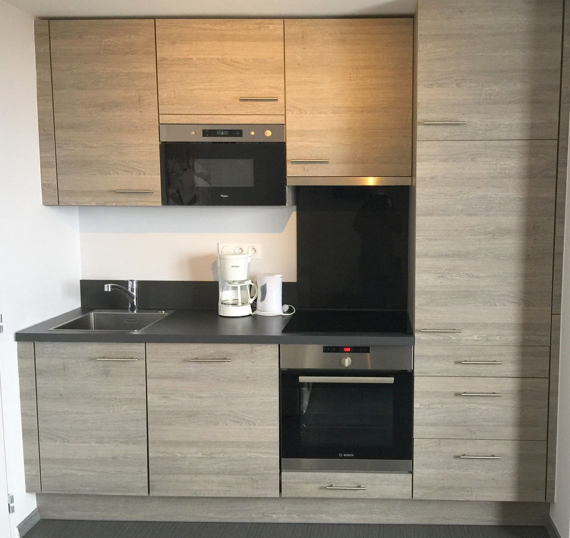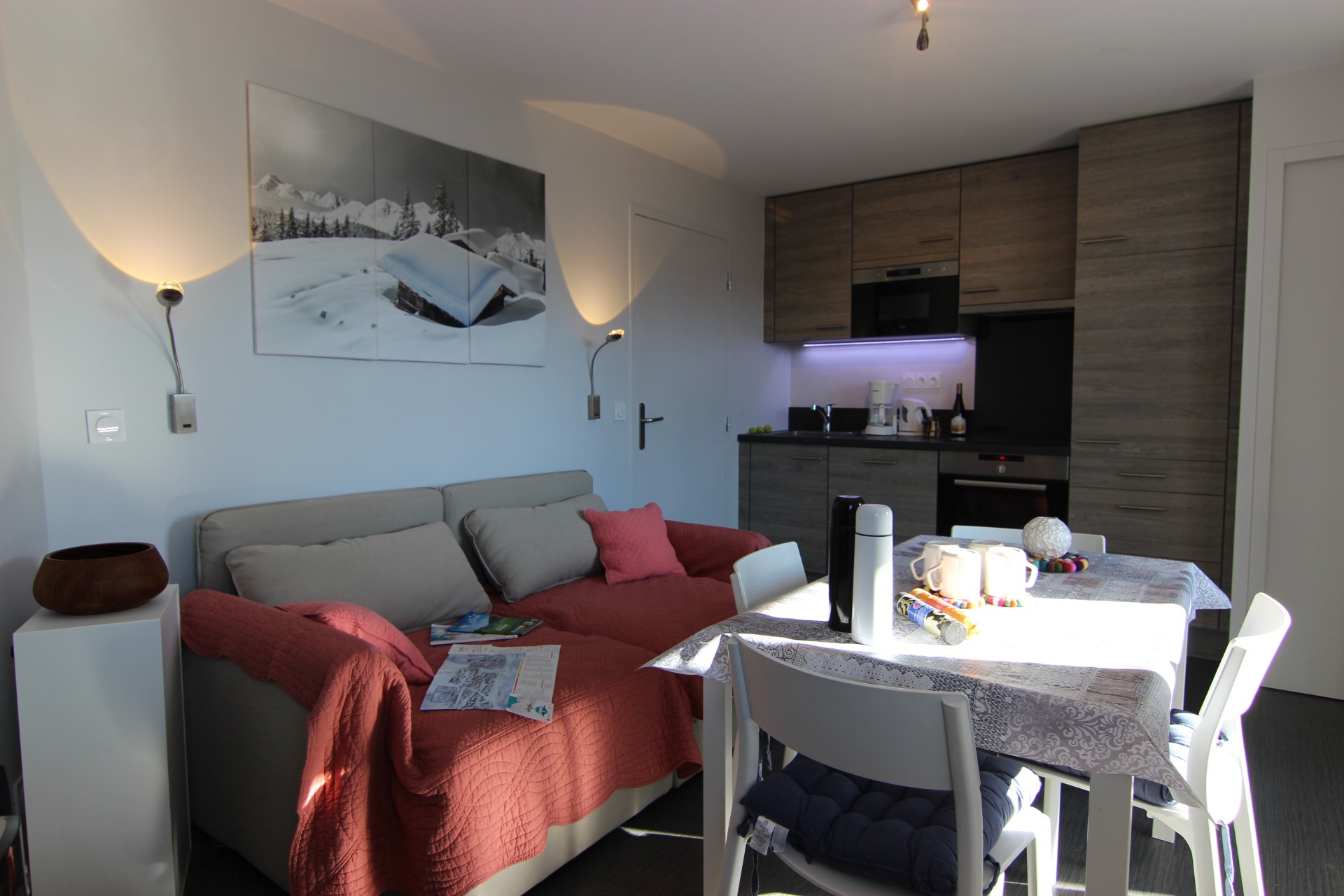 Kitchenette : oven, electric hobs, dishwasher, extractor fan and refrigerator.