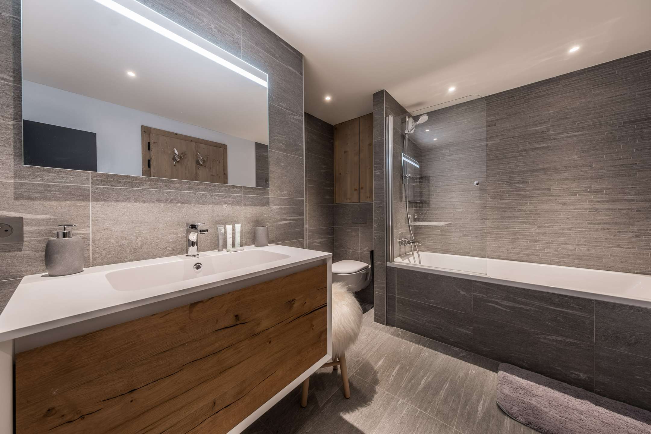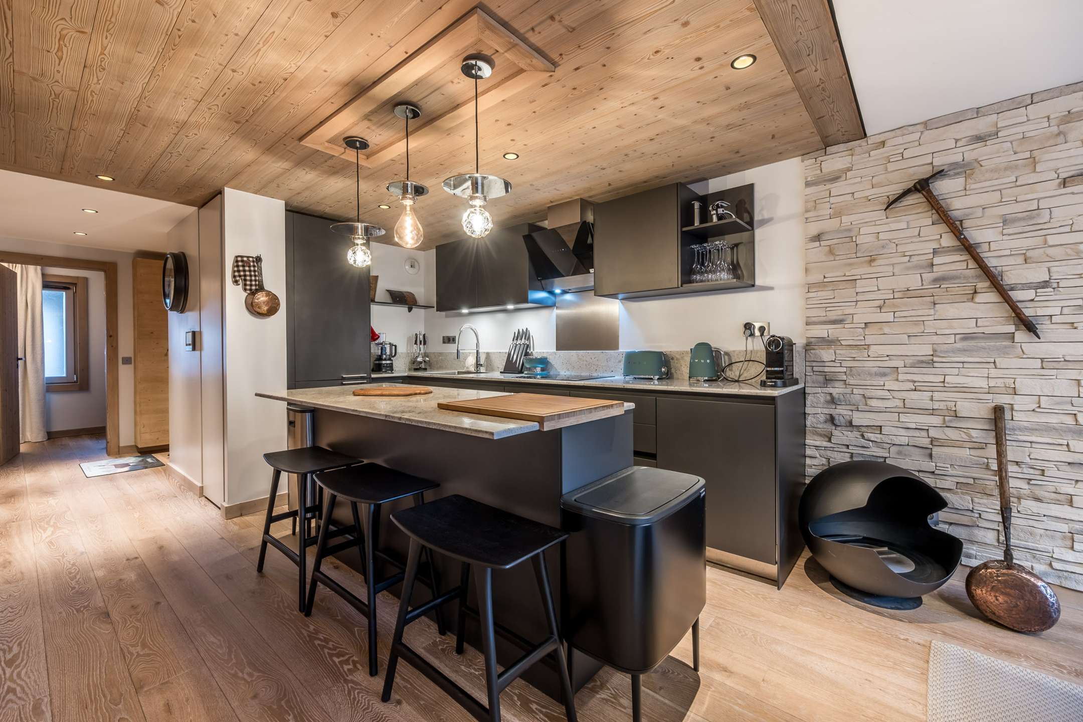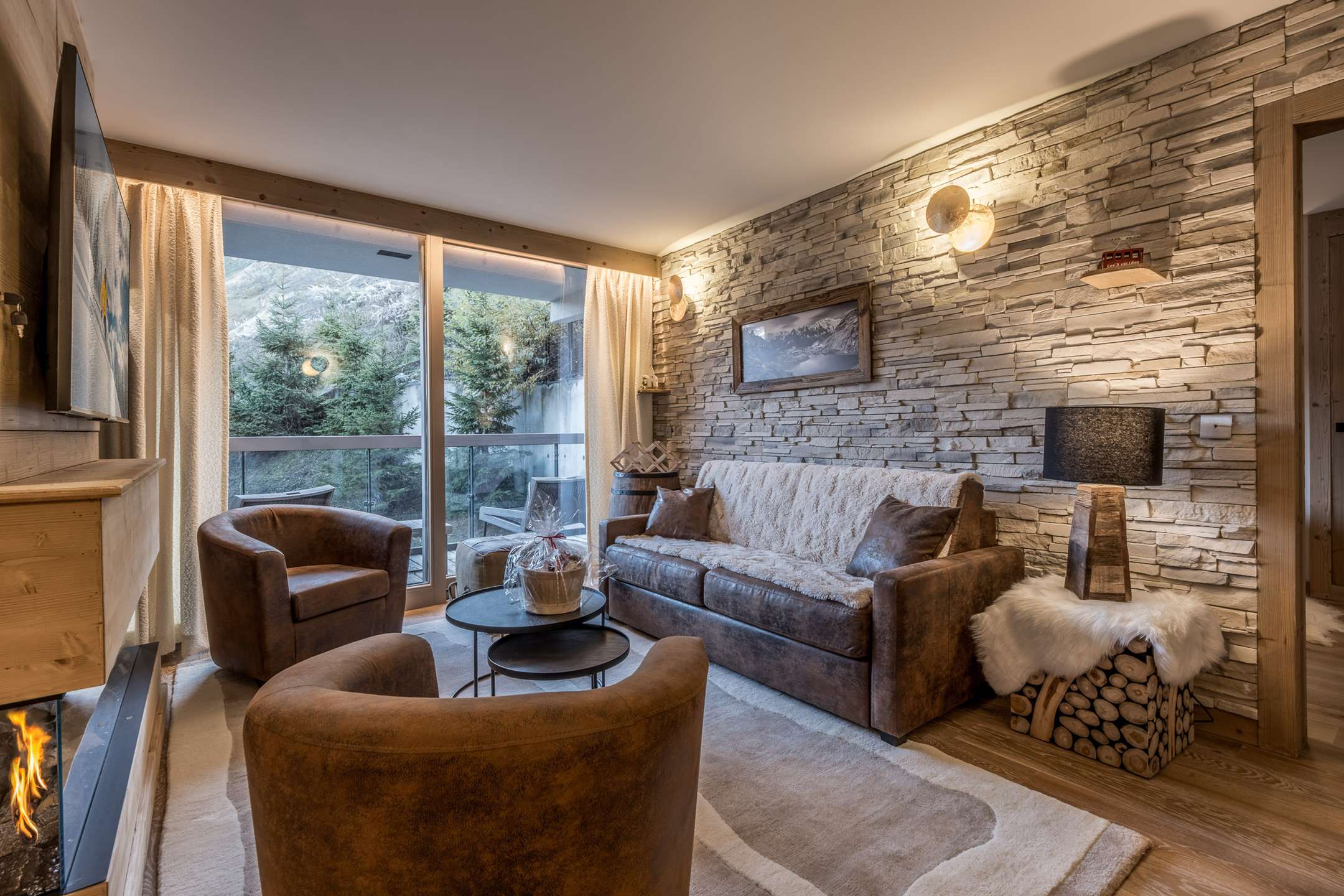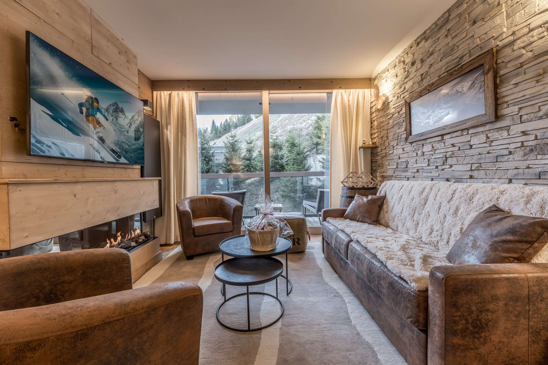 Very nice apartment with stone and wooden walls in the dining room, living room, and bedroom n°1 to create a modern chalet atmosphere, with a balcony overlooking the mountains, ski slopes, and the Grangettes gondolas, located in the heart of Courchevel village, ideal for a family stay - Courchevel 1550 - 6 people.