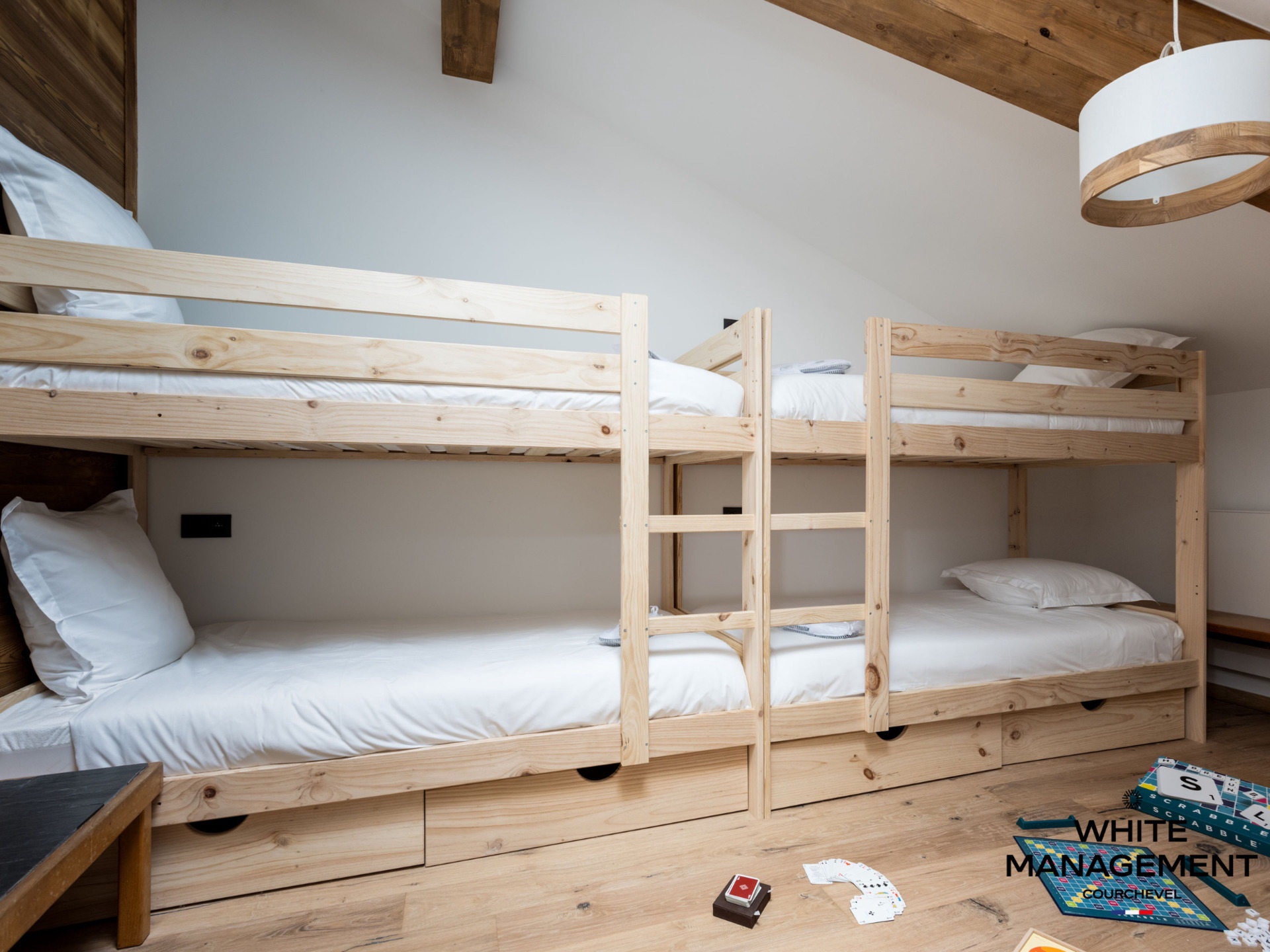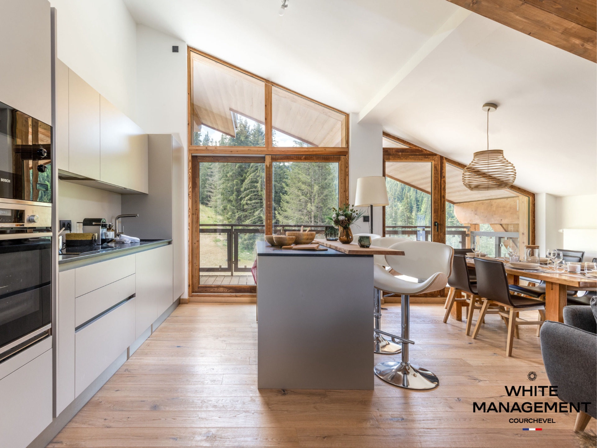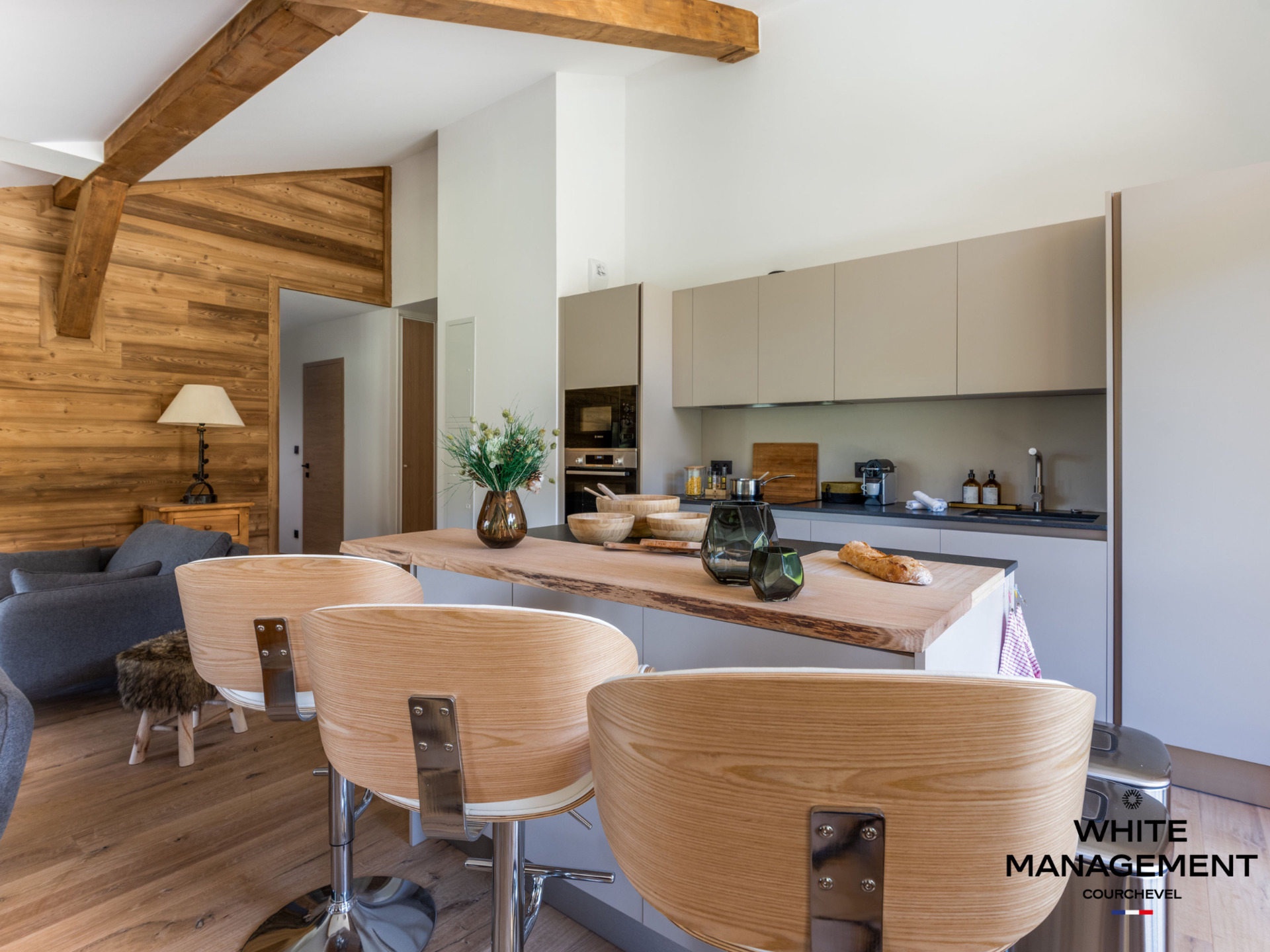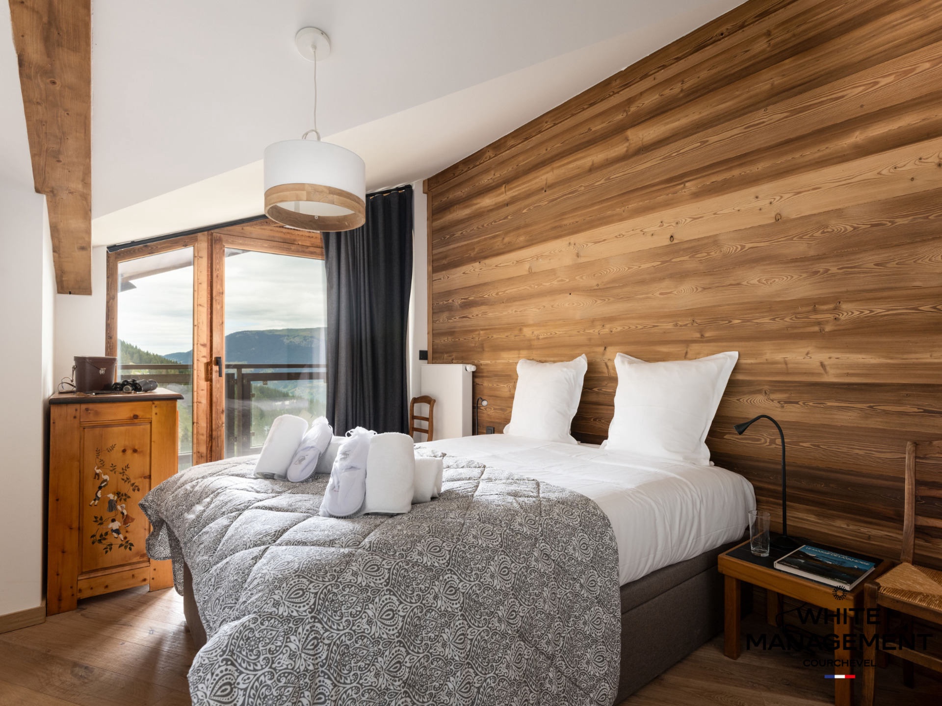 Enter this beautiful apartment decorated in the mountain tradition and located on the top floor of the Hellebore residence. This superb property, with an area of 88 sqm comfortably accommodates 8 people. The penthouse consists of a spacious living room with a living area with exposed framework, a dining area and a large open kitchen with central island. The sleeping area is composed of 3 spacious bedrooms, one of which has a private bathroom. You will appreciate the après-skis on the balconies offering a 180° exposure, oscillating between the sun on the South side and the splendid Valley view on the North-West side.