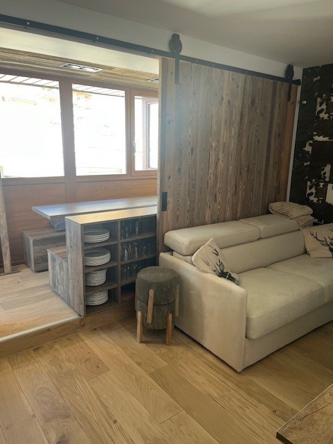 Living room: spacious and bright, with a sofa that converts into a double bed, several comfortable seats, and a large-screen TV.