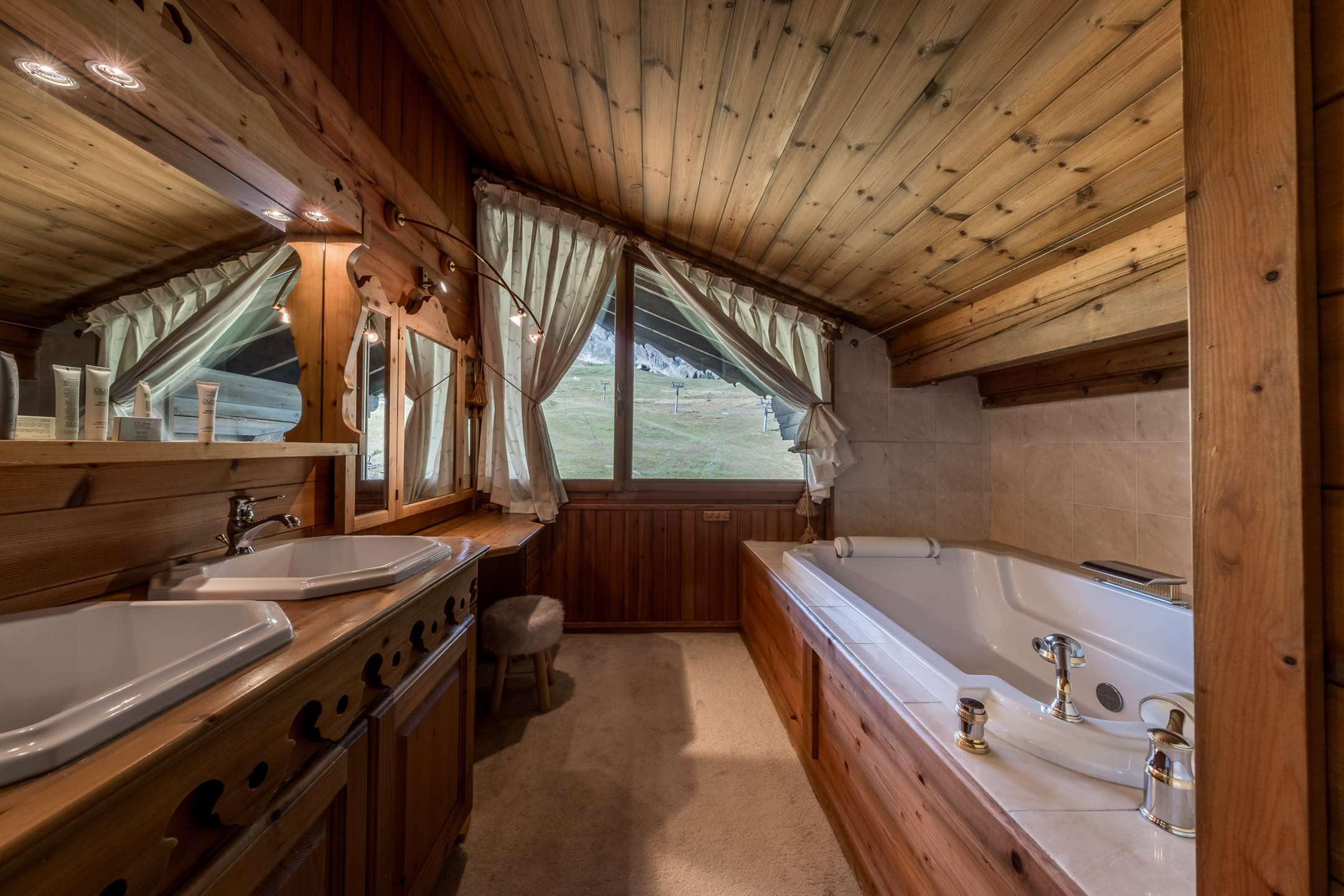 Duplex flat with cabin ideally located next to the slopes of Courchevel 1850, ski-in/ski-out, with a magnificent view of the slopes.