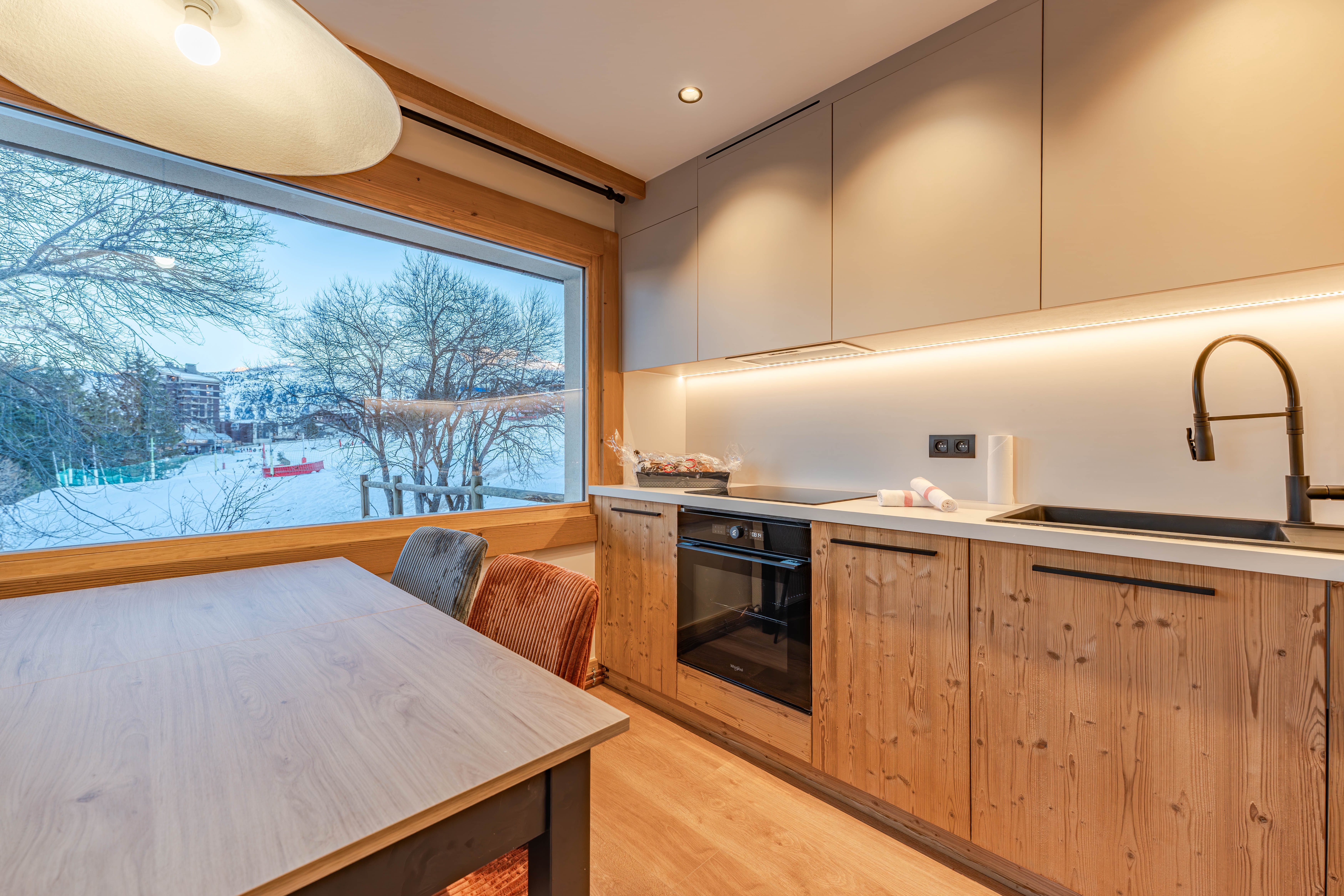 Completely renovated for winter 2025-2026, the Vanoise 11 apartment welcomes you in an elegant and warm setting in the heart of Rue du Plantret. Ideally located just 130 metres from the Plantret ski slope, a 3-minute walk from the shops of the Forum and La Croisette, and close to the ski schools, it enjoys a privileged location in the centre of the resort.