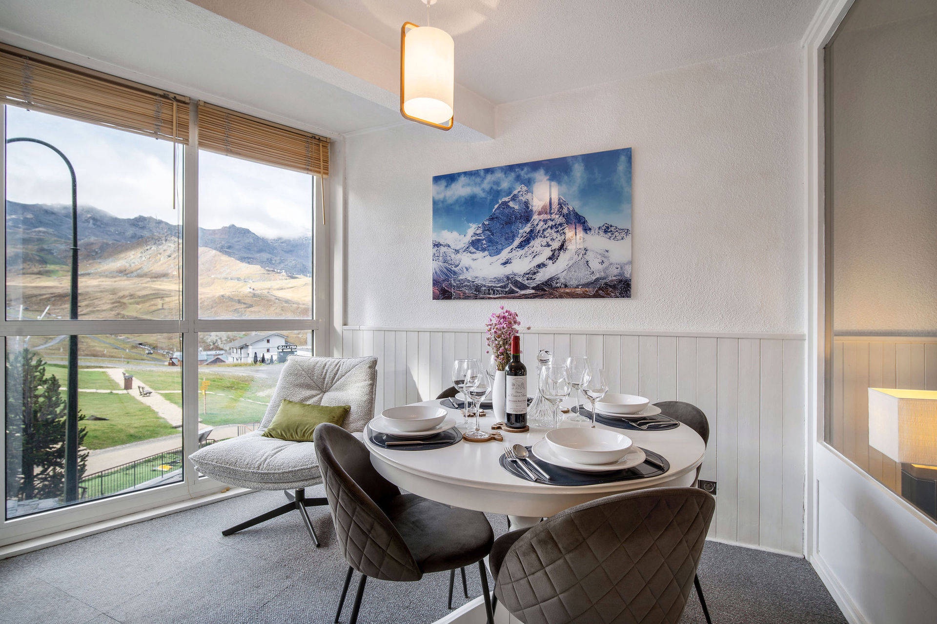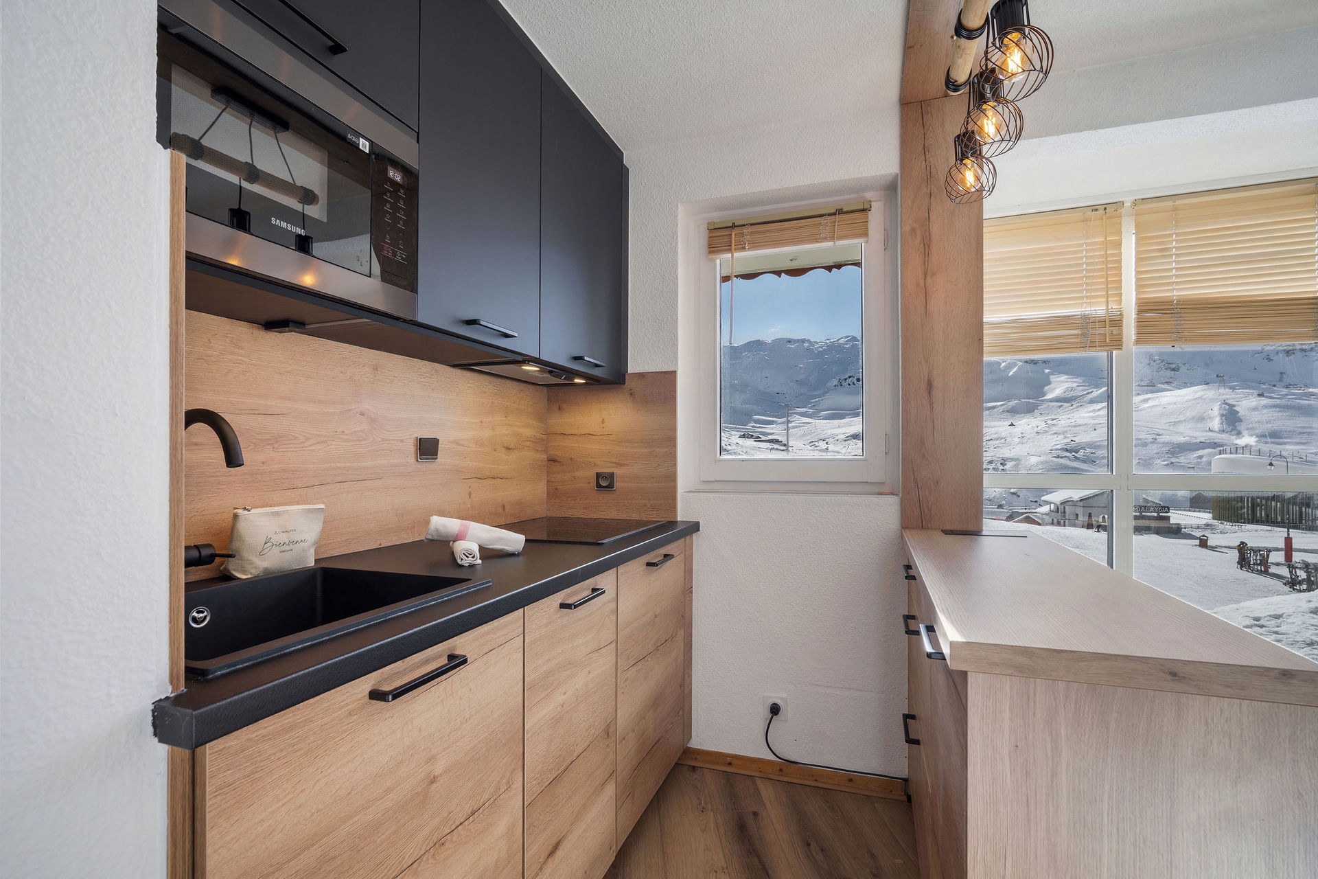 Ideal apartment for 4 people located in the center of the resort, close to shops and at the foot of the slopes. With a surface area of 43 sq.m, it is equipped as follows: