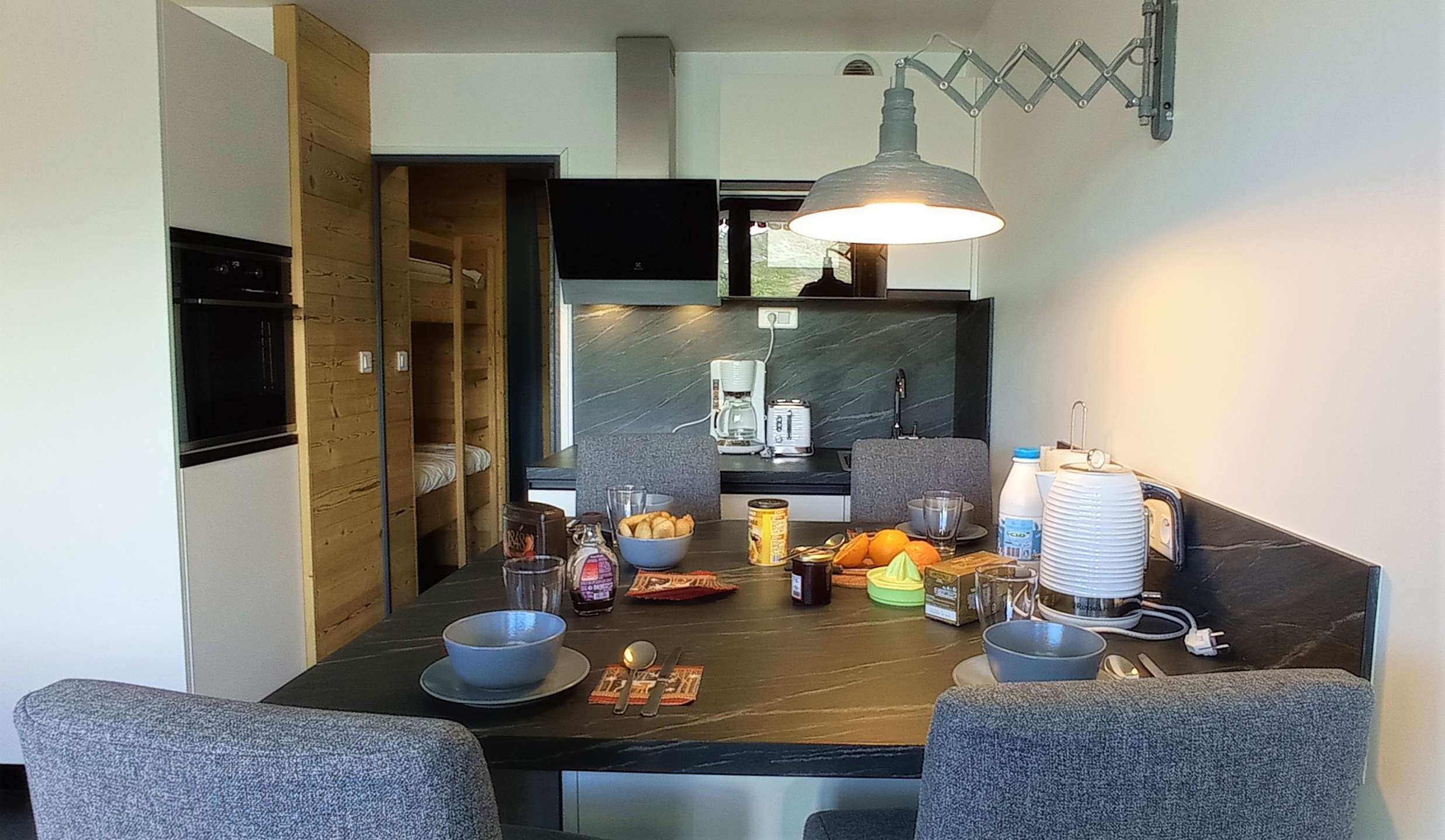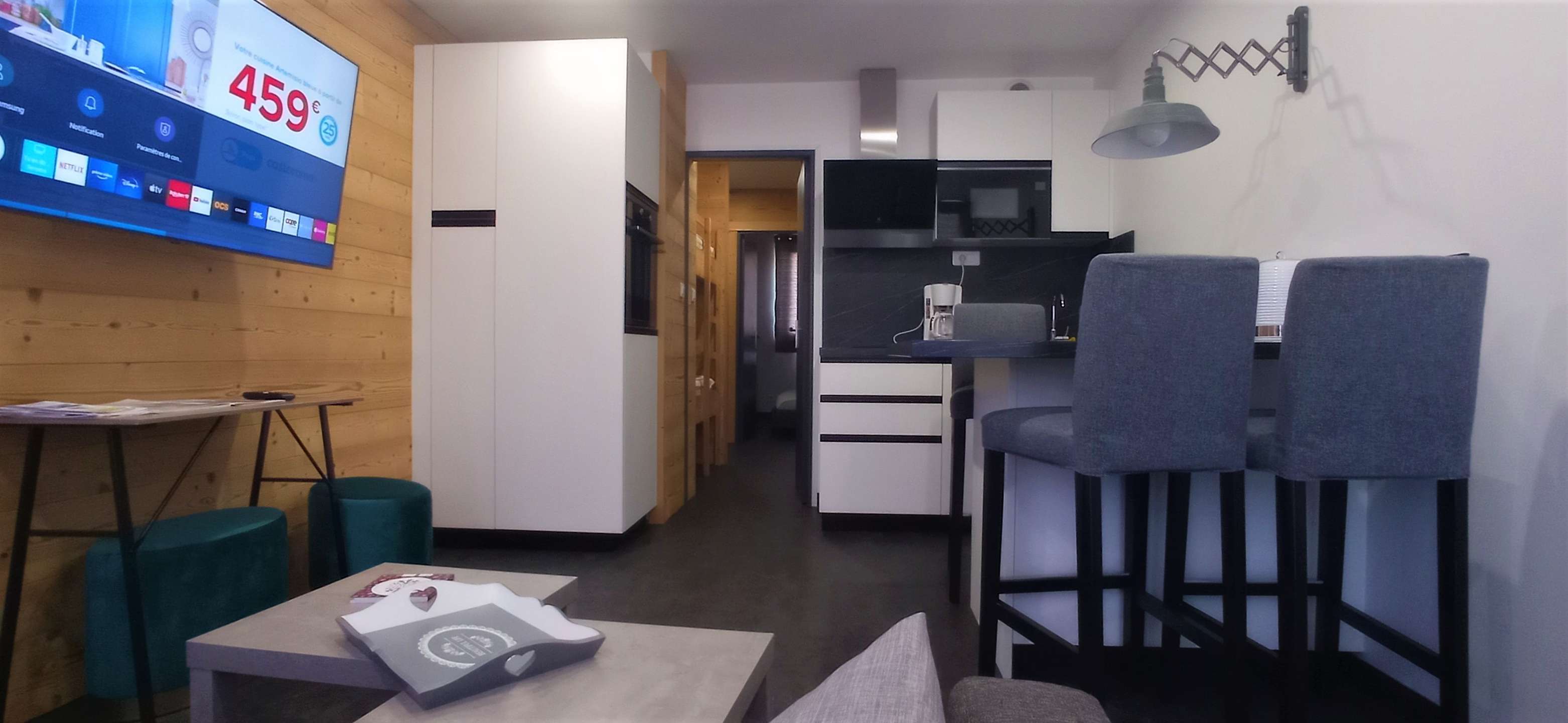 | Splendid apartment for 4 people, 36m² cozy and warm, completely renovated in a warm modern mountain style. It is located in a residence close to all amenities the apartment is composed of: - At the entrance, two bunk beds, storage, wardrobe and coat racks,