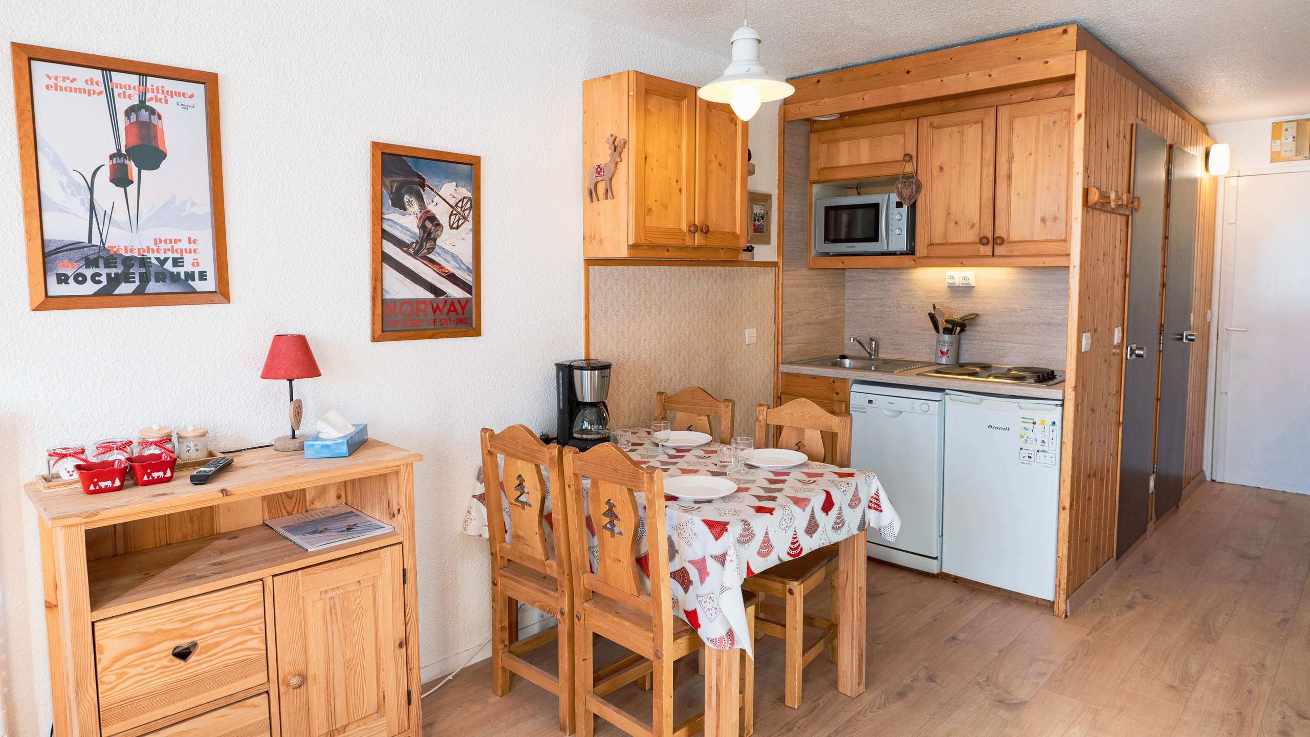 - Kitchenette is fully equipped for 4 persons with electric hobs, dishwasher, mini-oven, fridge, coffee machine.