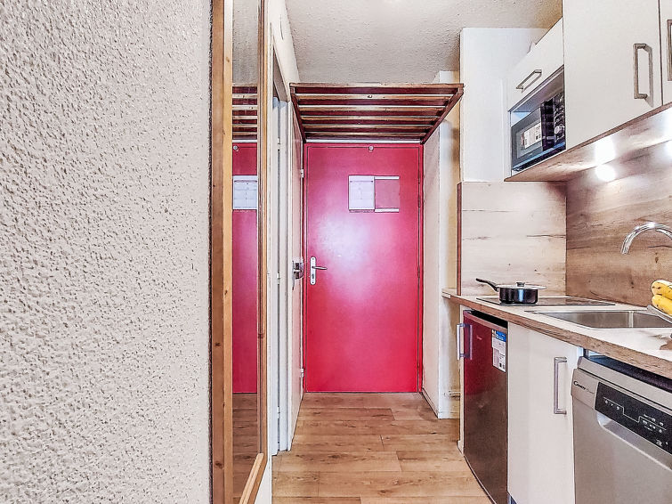 1-room studio 22 m2 on 5th floor, north facing position. Practical furnishings: living/dining room with Dressing room with 1 bed (80 cm, length 190 cm), 1 pull-out bed (1 pers. 2 x 80 cm, length 190 cm), dining table and electric heating. Exit to the balcony, north facing position. Kitchenette (2 hot plates, dishwasher, toaster, kettle, microwave, electric coffee machine). Bathroom, sep. WC. Carpet. Small balcony 3 m2, north facing position. Partial view of the mountains, the valley, the ski run and the resort. Facilities: Internet (WiFi, extra). Please note: non-smokers only. Smoke alarm. Offer by a private individual according to Art. 155, IV of CGI. 73257011391MX