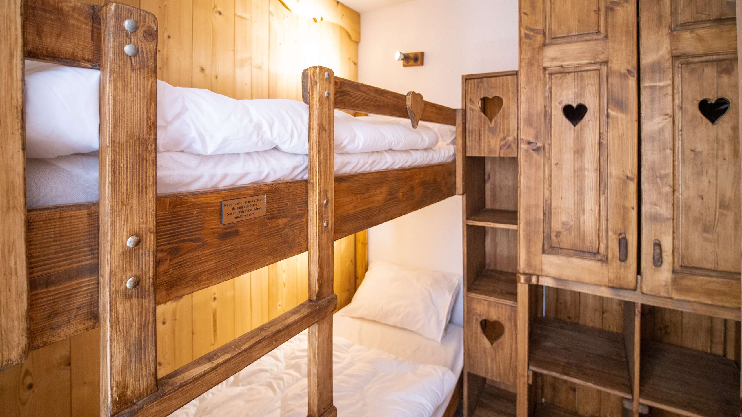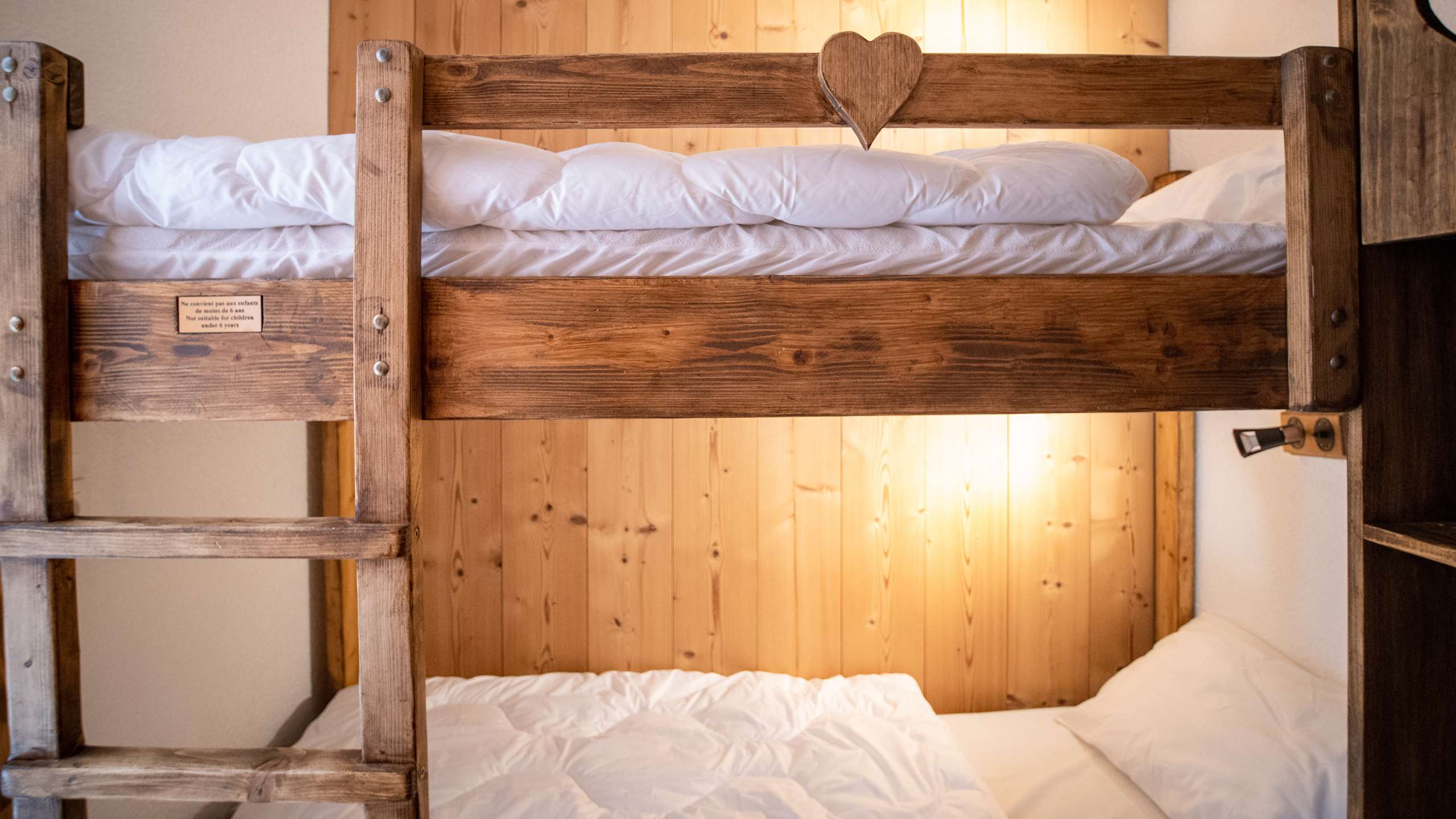 - 1 bedroom with a sofa bed convertible into a double bed and 1 cabin with bunk beds. Equipped with duvets and pillows.