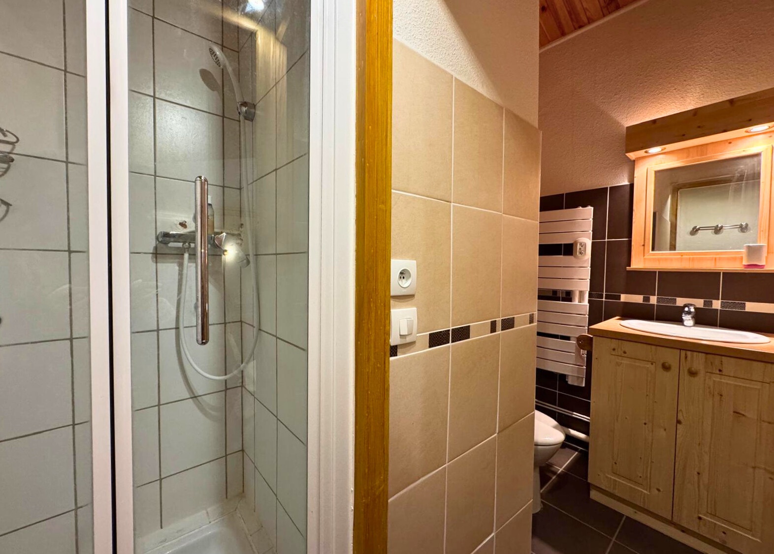 Bathroom: washbasin, shower, toilet