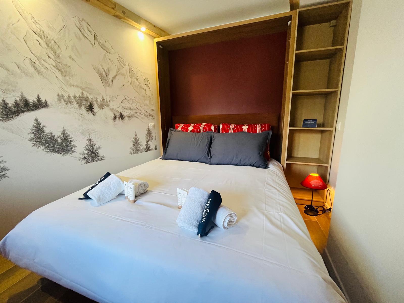 Come and discover this tastefully renovated apartment, located on the upper floor, offering exceptional unobstructed views of the mountain peaks and pine forest. Close to the resort centre, it is ideal for skiers and non-skiers alike, combining comfort and convenience.