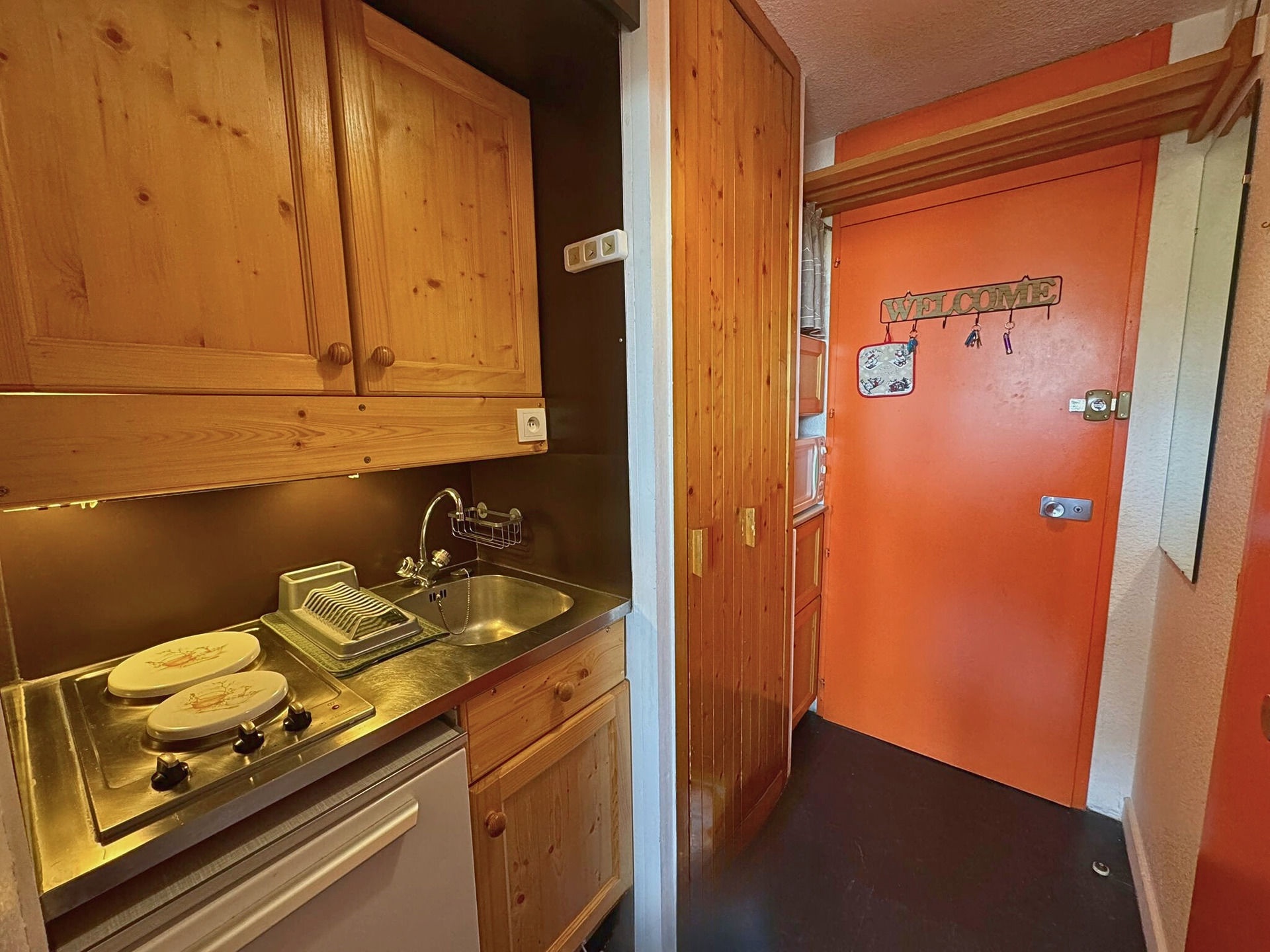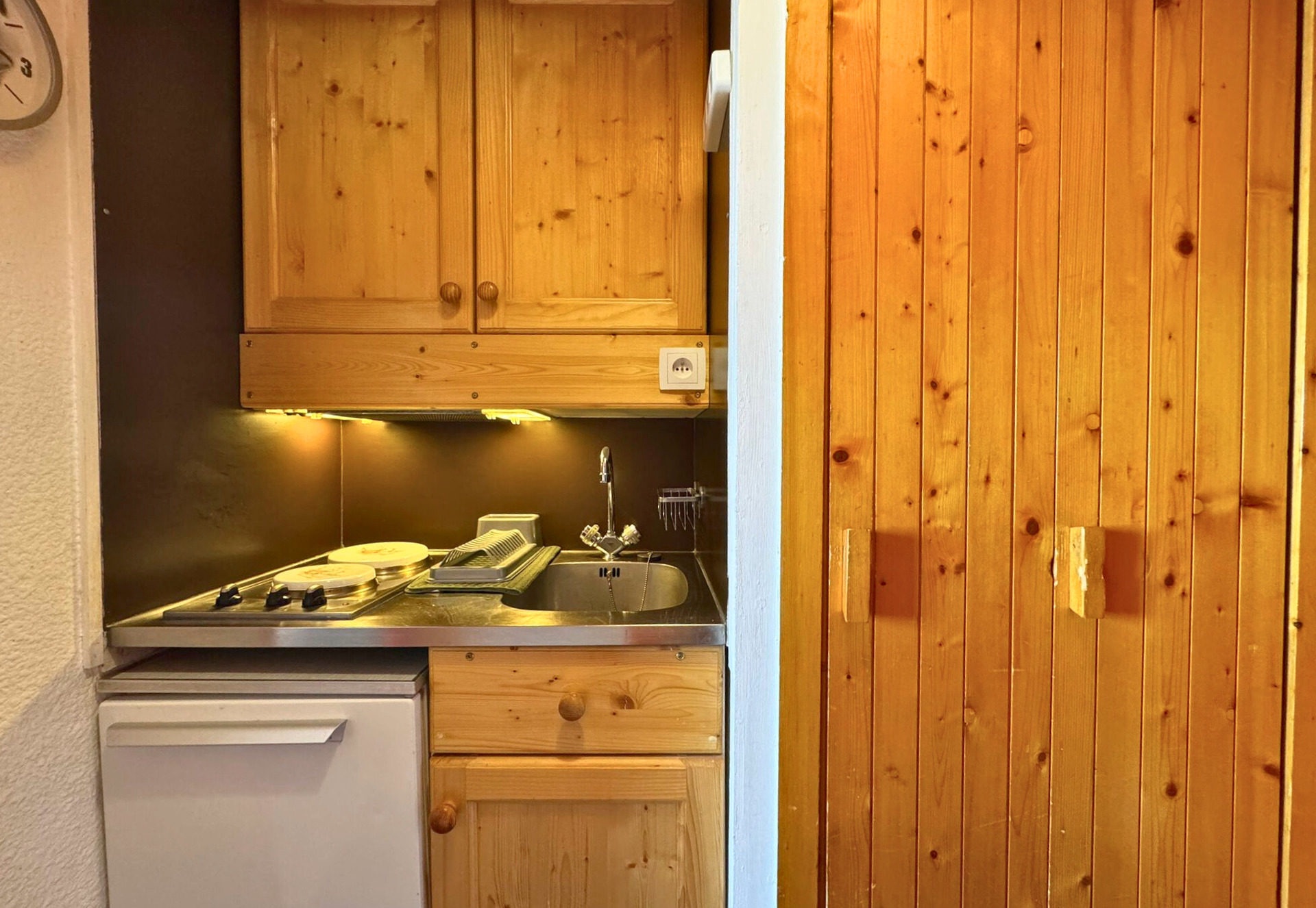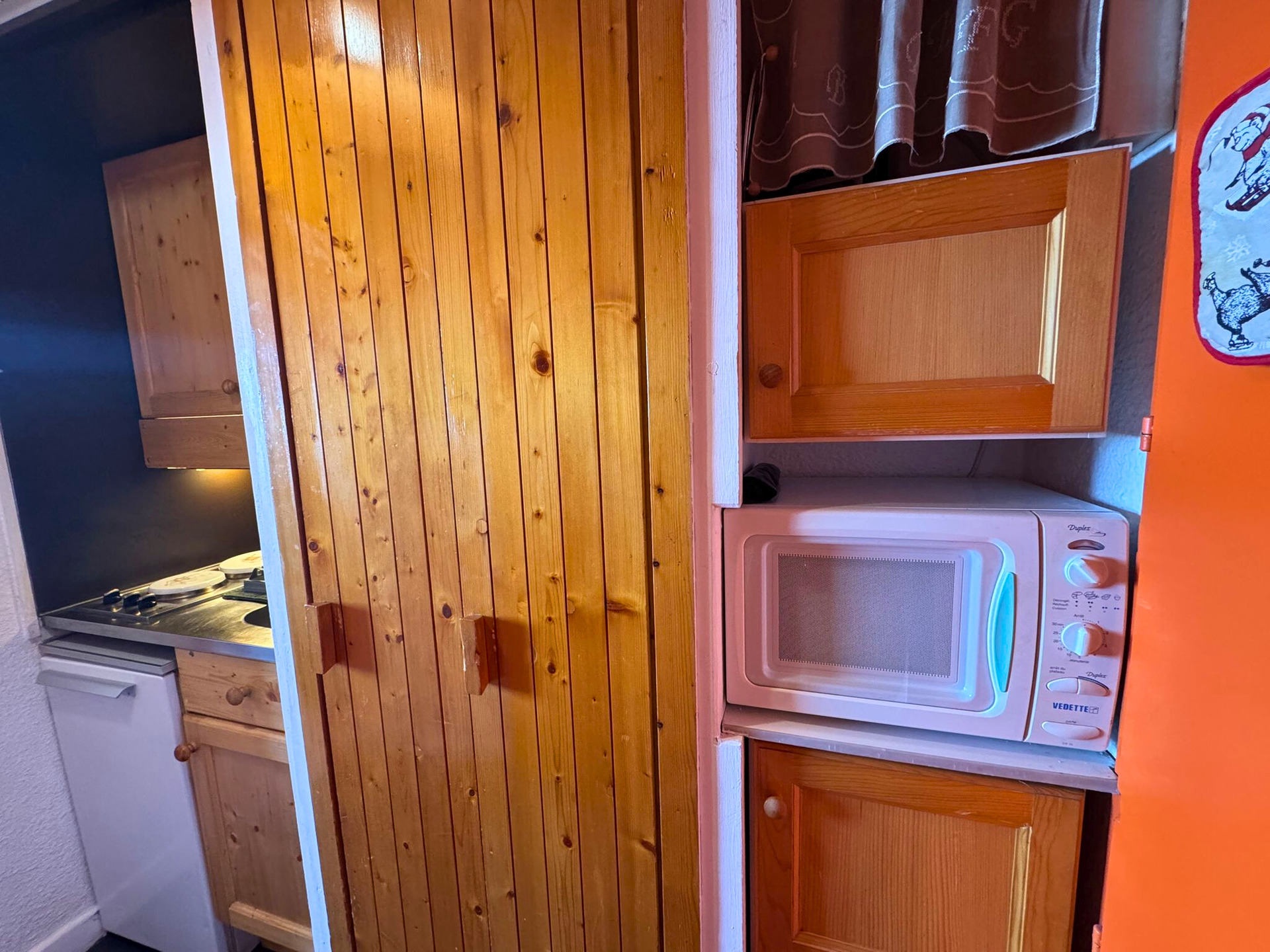 Kitchen: electric hotplates (x2), microwave, refrigerator, kettle, coffee maker (Senseo), raclette grill (6pers.)